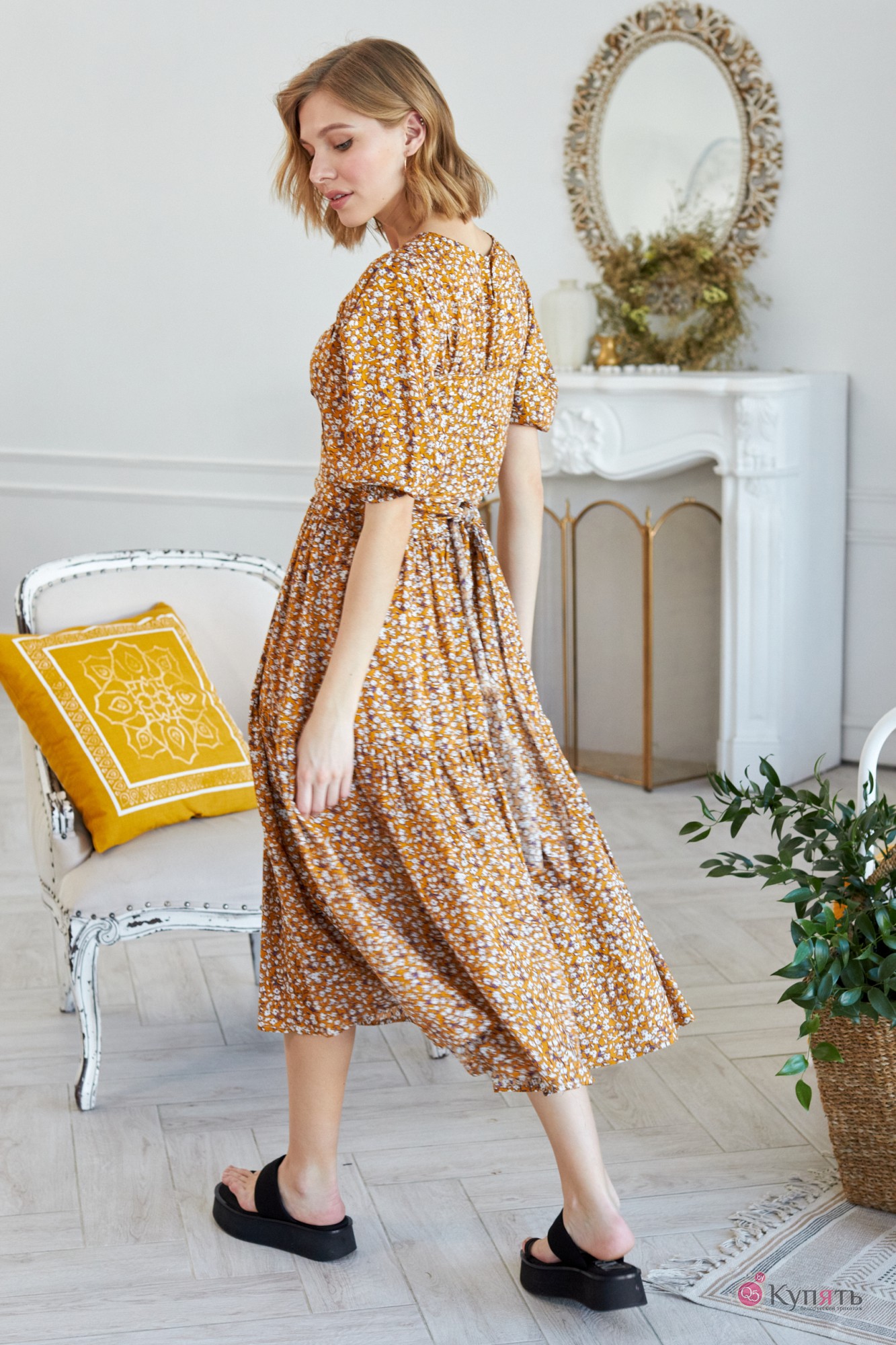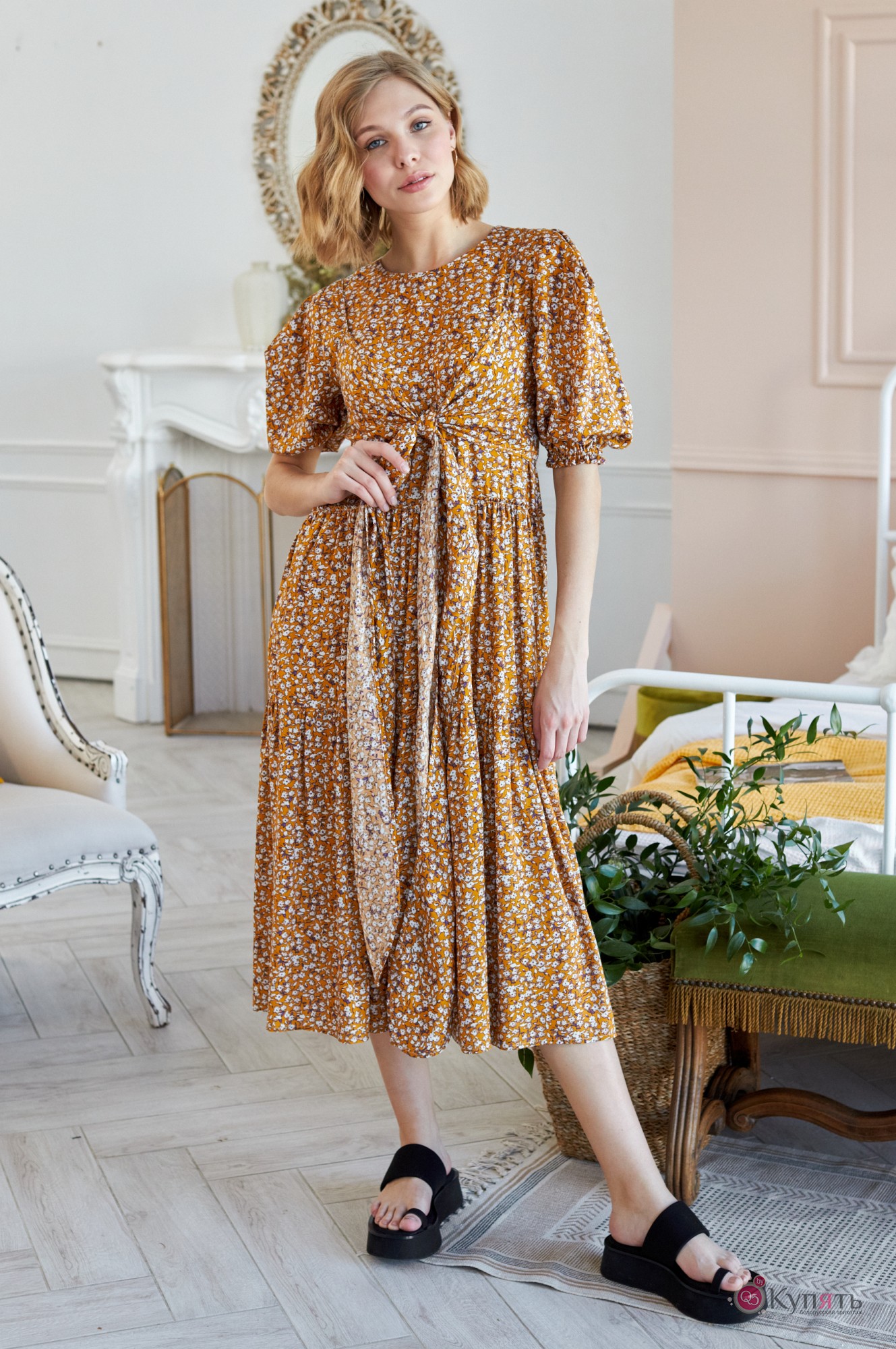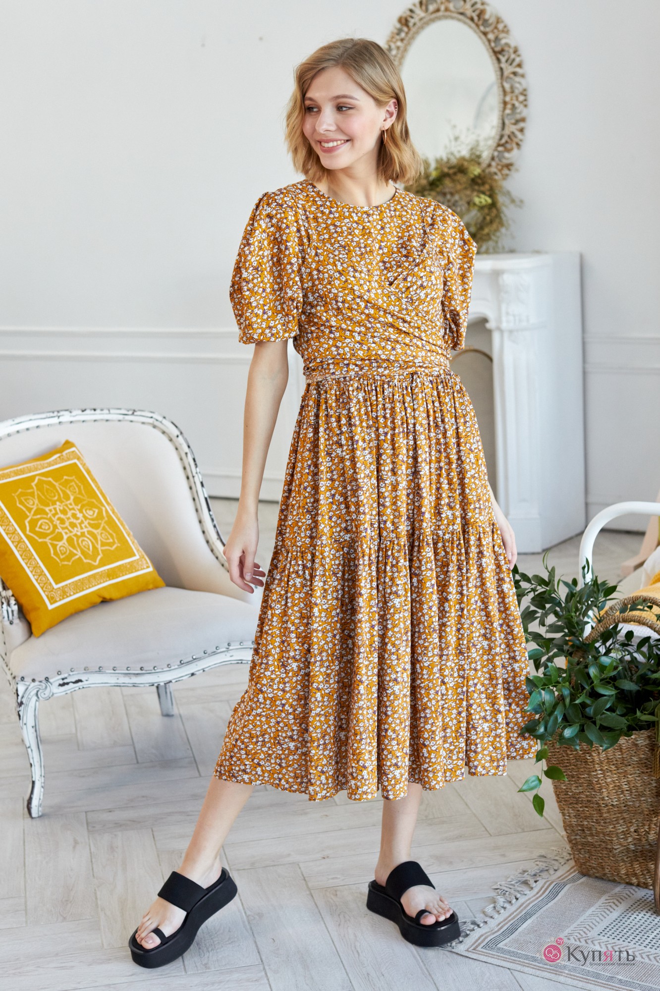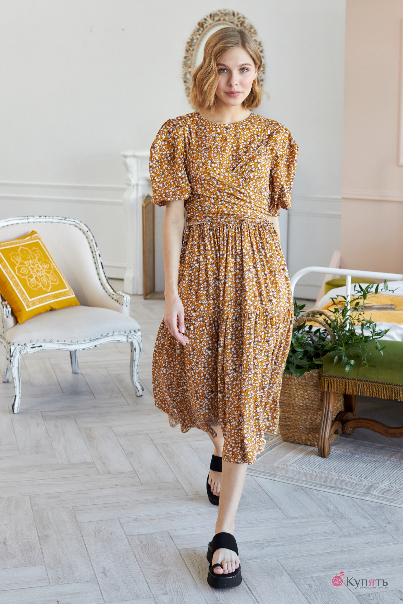 Платья в цветочек, которые носило не одно поколение модниц всех времен и народов, не потеряют своей актуальности и в ближайшее время. Лучшие мировые бренды предлагают в сезоне 2021 платья, украшенные цветочными принтами разного калибра. Наша компания не исключение. Мы предлагаем вам самый яркий образ этого сезона - это модель платья 791. Платье свободного кроя выполнено из нежной плательной струящейся ткани в цветочный принт. По переду округлый вырез горловины, на спинке по горловине прорезная застёжка «капелька» на навесную петлю и пуговицу. Рукав втачной объёмный, со встречными складками в высшей части рукава. По низу рукав собран на резинку для удобства и комфорта во время носки. По переду и спинке притачные воланы на сборку, которые придают платью романтичности и нежности. В комплект к платью входит съёмный топ на бретелях, который можно завязать по центру переда или завязать на спинке, а так же его можно носить отдельно с шортами, джинсами и т.д. Выбрав платье с цветочным принтом не нужно искать аналогичные аксессуары - обувь и сумку, ведь яркий акцент для вашего образа уже есть - это платье 791 от LOKKA. Яркое и самодостаточное, лёгкое и нежное - и вы готовы покорить этот мир!