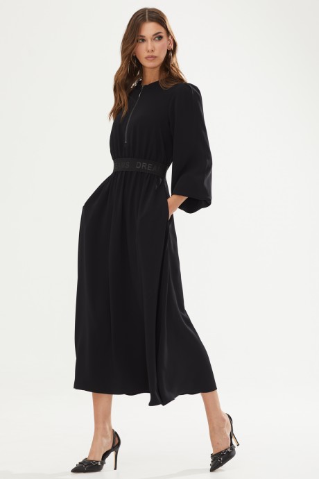 Стильное платье полуприлегающего силуэта, расширенное книзу из струящейся ткани. Горловина-стойка с застежкой на декоративную молнию. Рукав втачной со складкой по окату, по низу декоративная резинка. По переду и спинке на линии талии в подрез вставлена декоративная резинка. Обращаем ваше внимание, что фурнитура может незначительно отличаться от фото.