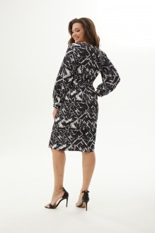 Платье прямого силуэта зауженное книзу. Горловина в форме закругленного каре. По спинке средний шов, по низу шлица. Застежка сзади на пуговицу. Рукав слегка расширенный книзу со складками. В комплект входит пояс из основной ткани.