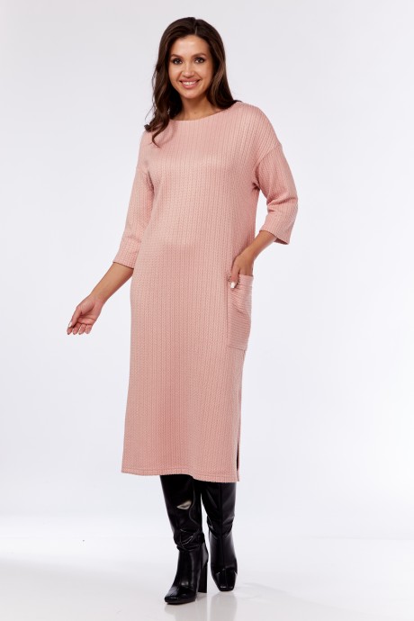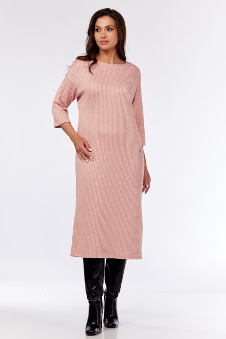 Базовое, прекрасно подходящее для повседневной жизни платье. Комфортный, прямой силуэт мягко сядет по фигуре и не будет сковывать ваших движений. Платье выполнено из мягкого, уютного, приятного на ощупь трикотажа «в косичку». Спущенный рукав длиной 7/8. По переду изделия - карман, который украшен небольшой брошью. Также украшением изделия служит боковой разрез. Вырез горловины "лодочка". Платье прекрасно сочетается с любыми украшениями и разной по стилю обувью.