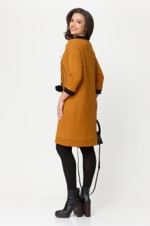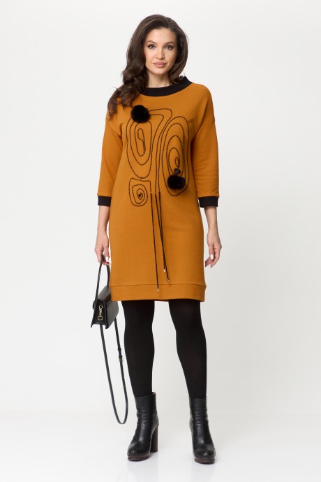 Женское трикотажное платье выполнено из футера 3-х нитка, для повседневной носки станет одним из базовых и любимых изделий в Вашем гардеробе. Платье прямого полуприлегающего силуэта, длиной до колена, однотонное с контрастными манжетами из довяза и планкой горловины. Вырез горловины круглый, рукав втачной длиной 3/4. Украшением платья служит контрастная вышивка из шнура и пристегивающиеся меховые пушки.