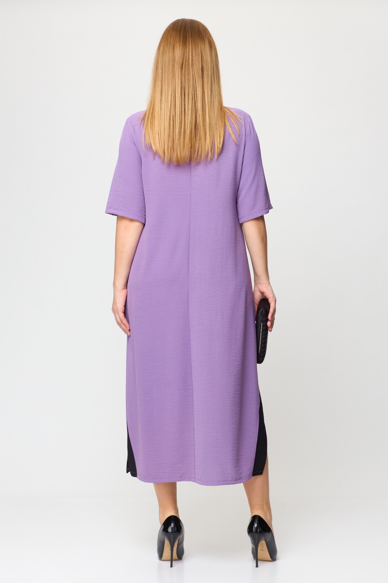 Платье в стиле casual предназначено для повседневной носки, прекрасно сочетается с любой по стилю обувью. Платье свободного кроя из однотонной легкой струящейся ткани с контрасной черной отделкой. Платье длиной ниже колена, рукав втачной короткий, до локтя. В качестве декора по переду изделия — настрочной элемент в виде цветка. По бокам изделия — разрезы, которые также обработаны контрастной тканью, в цвет декоративной нашивки.