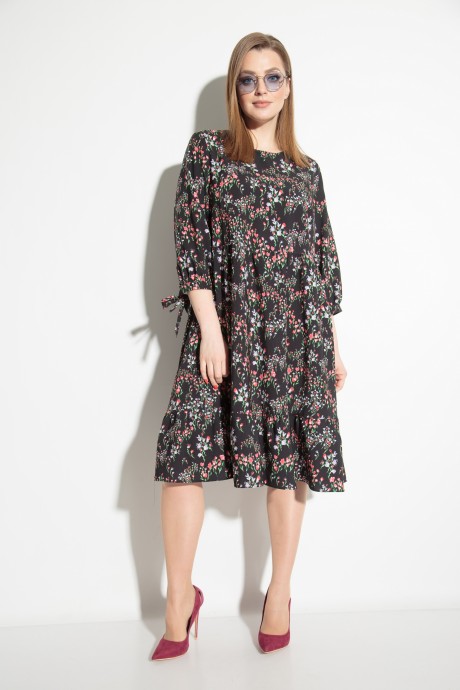 Нарядное ярусное платье выполнено в модный цветочный принт. Выполнено из приятной на ощупь тонкой струящейся ткани с содержанием стрейча, благодаря чему одевание и движения комфортные и не скованные, свободное прилегание сделают его незаменимым в Вашем гардеробе. В комплекте тонкий поясок из основной ткани. Округлая горловина, сзади застегивается на пуговичку. Рукав 3/4 чуть расширен к низу, завязывается на тесьму из основной ткани.