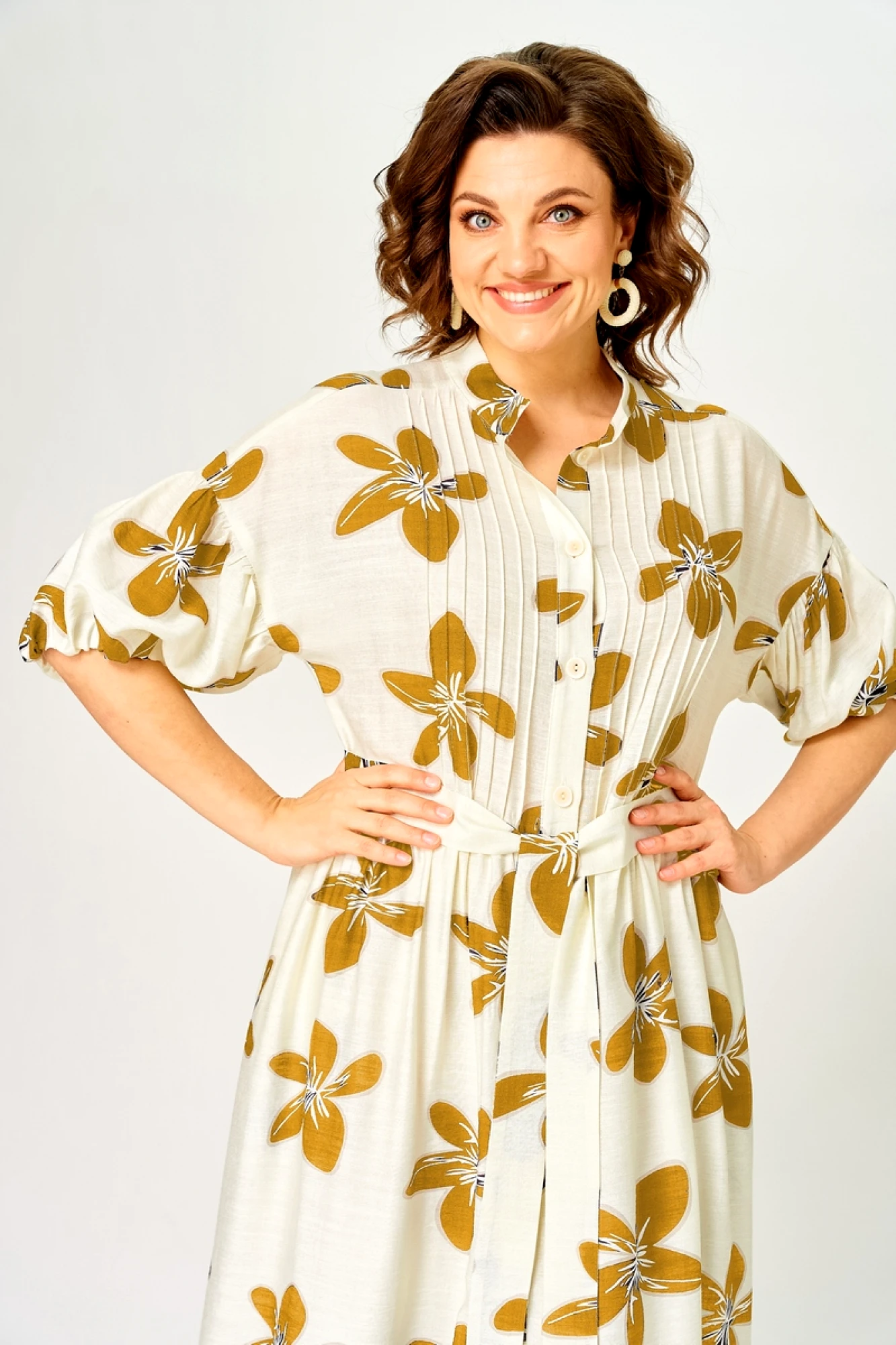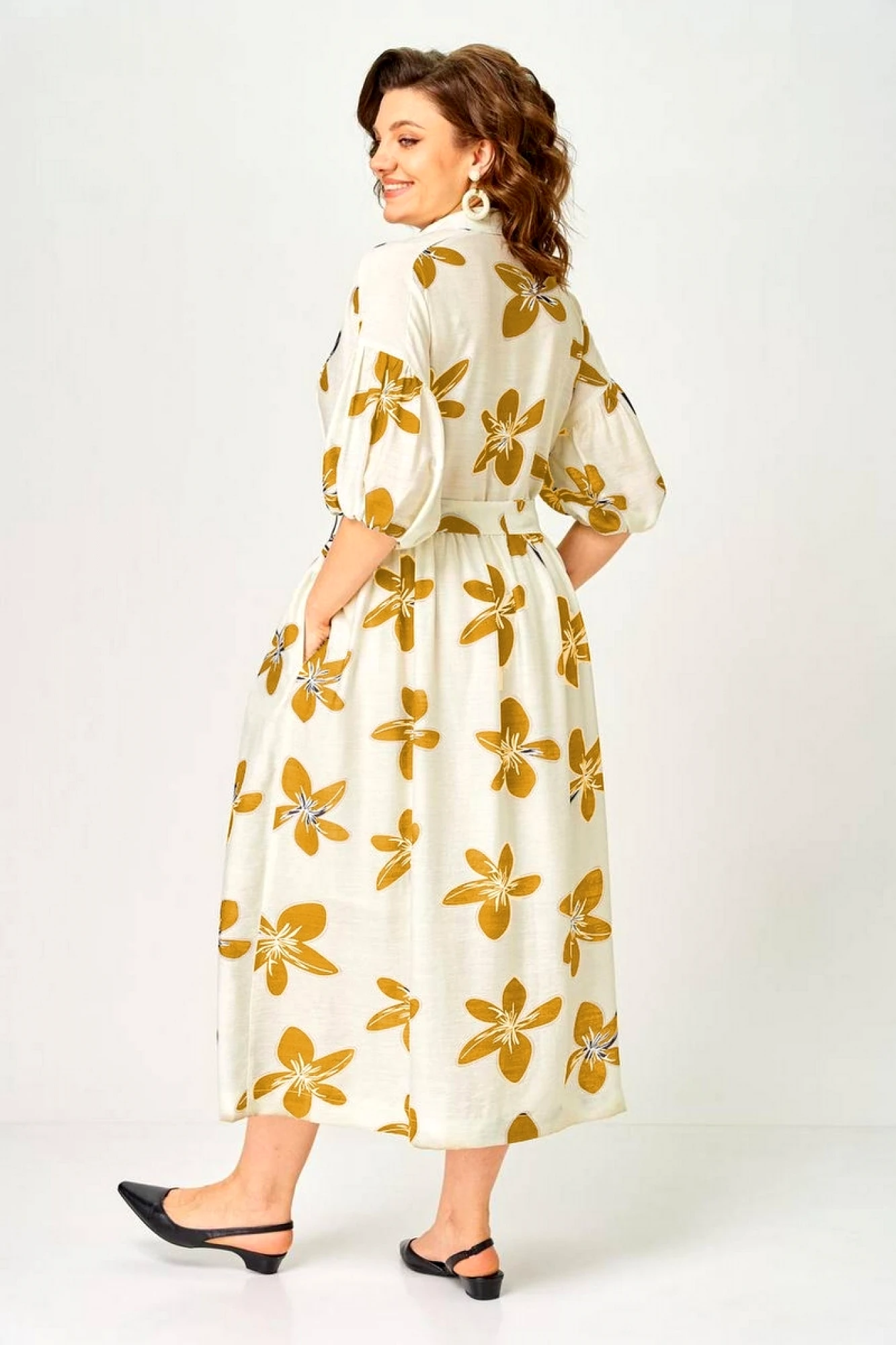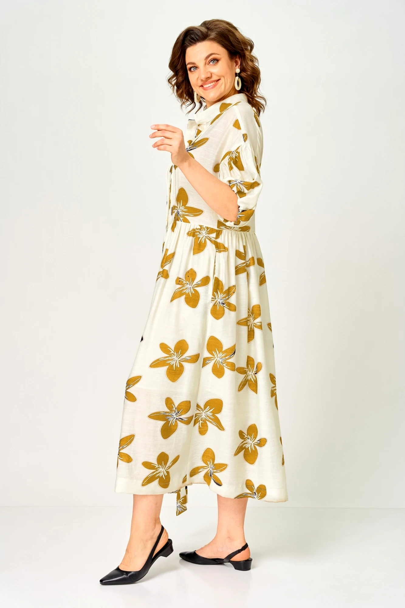 Платье Милора Стиль 1451 молочное, горчичные цветы