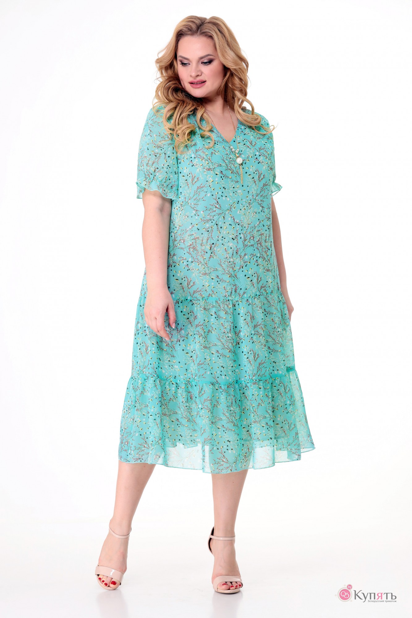 Платье Мишель Стиль 974 Цветочный принт на бирюзовом с ID товара 288716