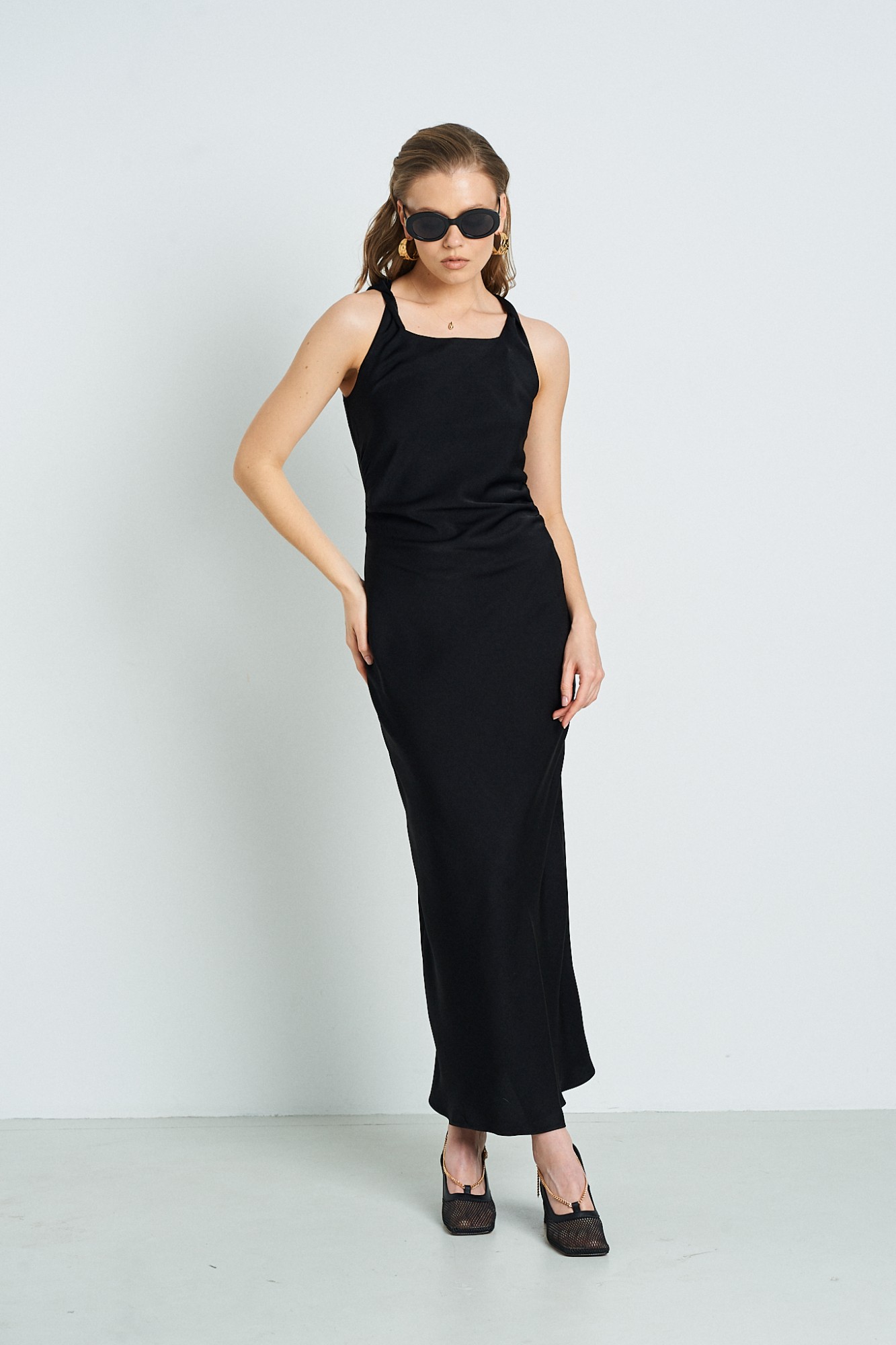 Платье из струящейся ткани. Прекрасно переливается на солнце.