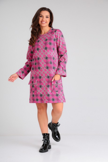 Платье Мублиз плюс 097 розовый, гусиная лапка