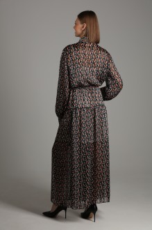 Элегантное платье в пол полуприлегающего силуэта, отрезное по линии талии. Перед с притачными планками с застежкой на петли и пуговицы. На переднем и заднем полотнищах юбки притачные кокетки,оформлены на небольшую сборку. Рукава длинные, втачные, одношовные, к низу расширены, низ обработан притачной манжетой. Воротник стояче-отложной с отрезной стойкой. Украшением изделия служит атласный бант. В комплект к платью идет нижнее платье-комбинация.