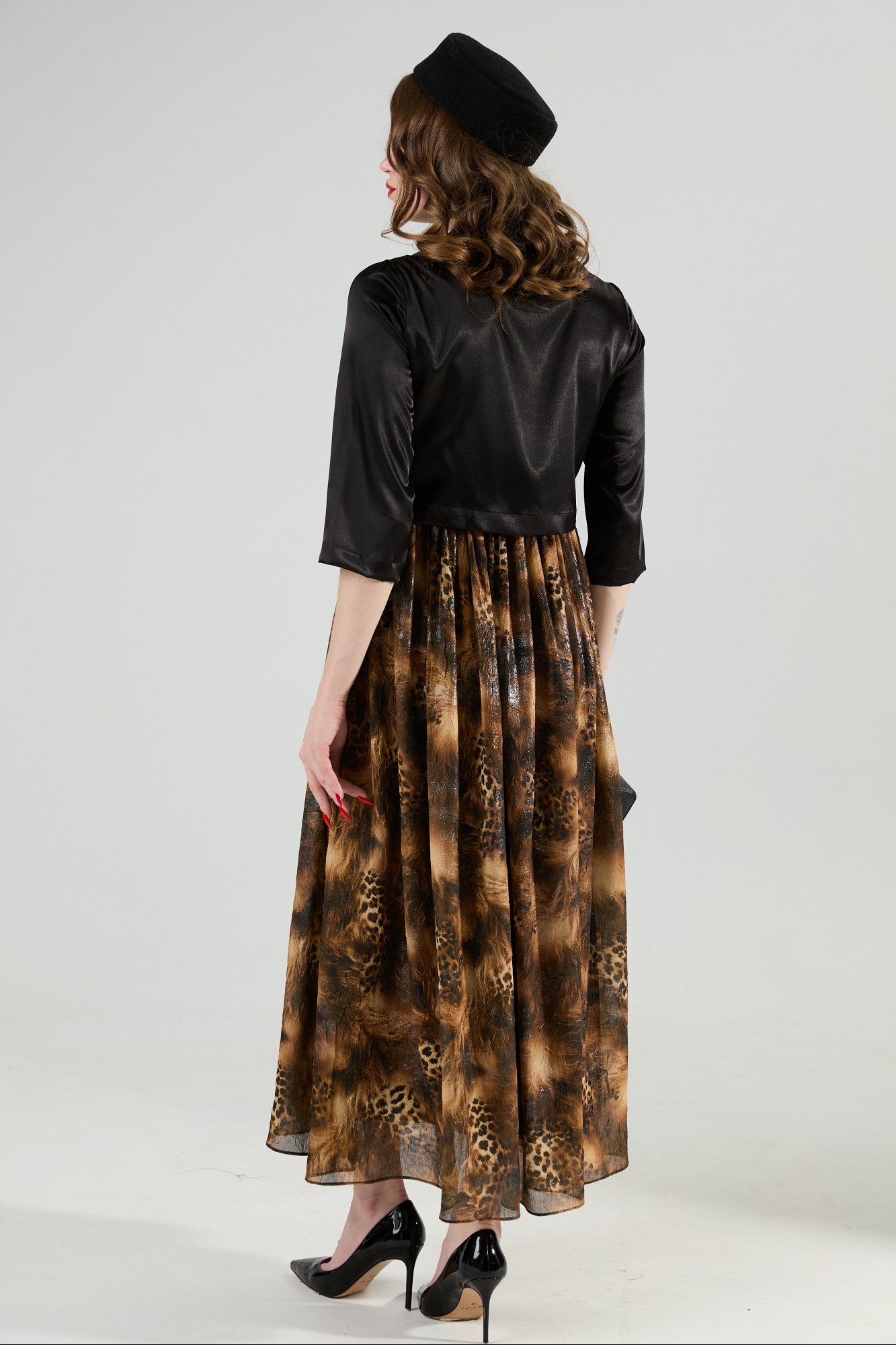 Платье NikVa н514 -4 чёрный и кофейный леопард