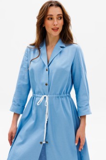 Классическое платье-рубашка из хлопка длиной миди с английским воротником на кулисе. По спинке фигурная кокетка.По низу изделия отделочная деталь из плиссе. Рукава с цельнокроеными отворотами длиной 7/8. Застежка бортовая на кнопки.