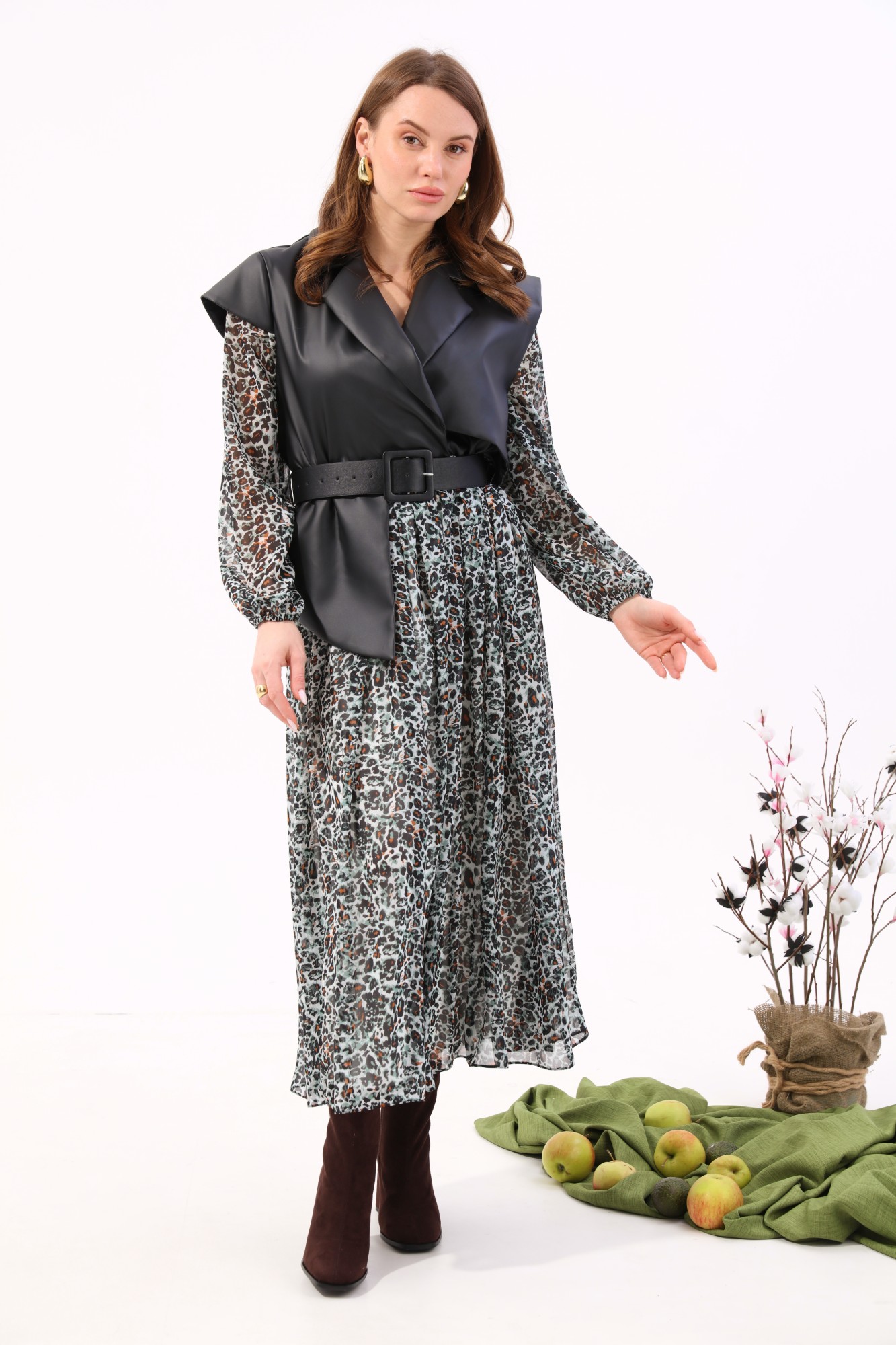 Платье NikVa н904 -3 чёрный, бирюзовый леопард