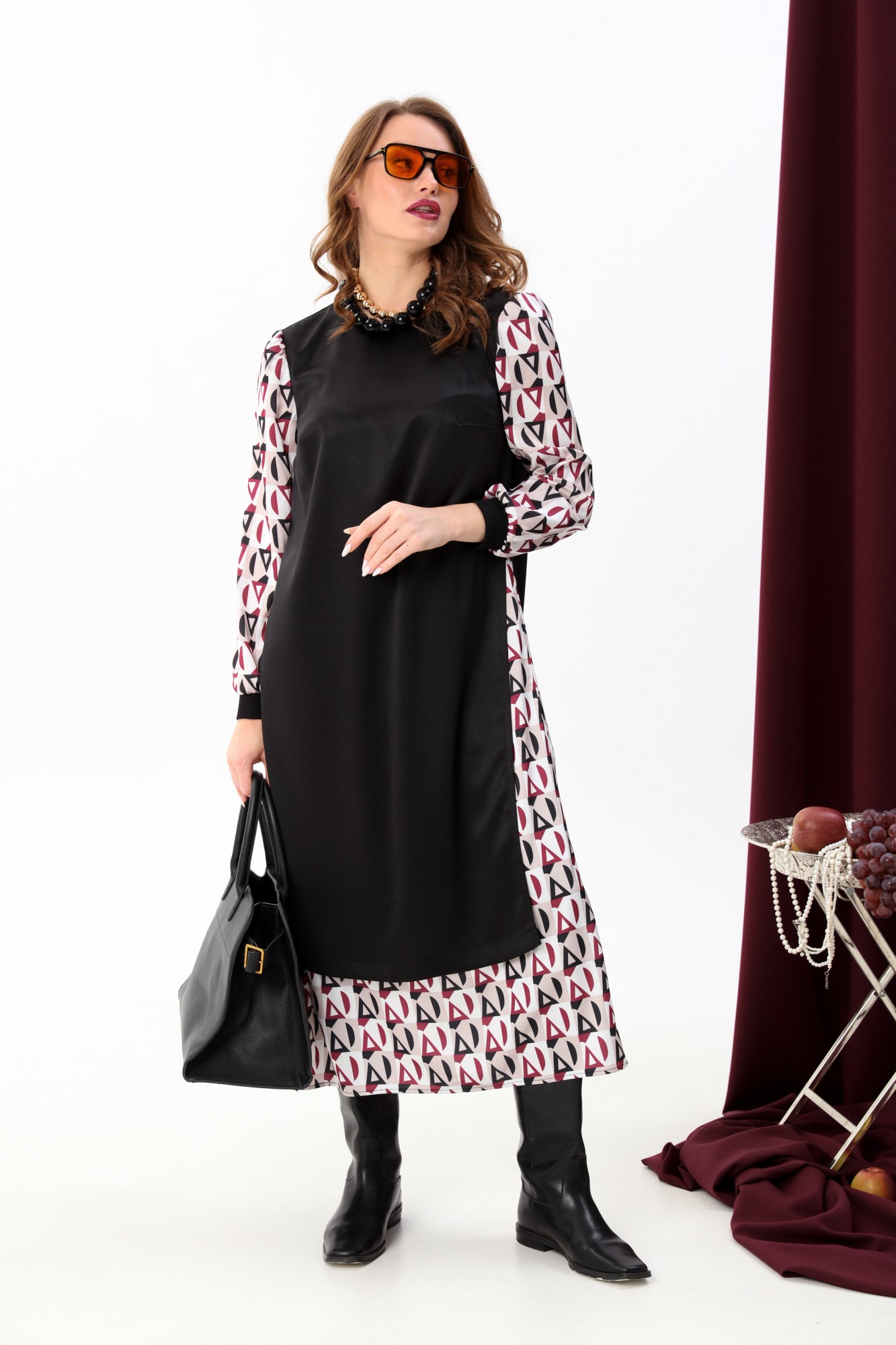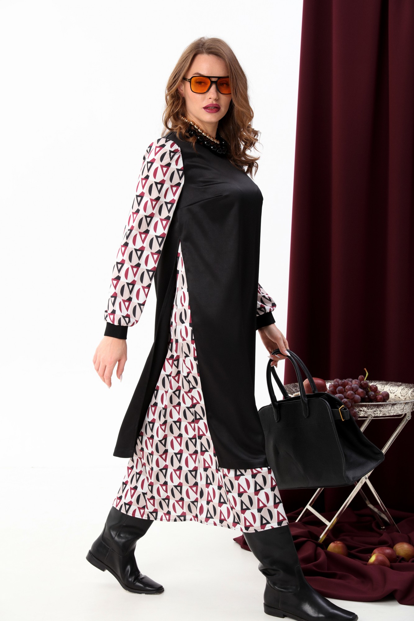 Платье NikVa н926 -2 ромбы бургунди и чёрный