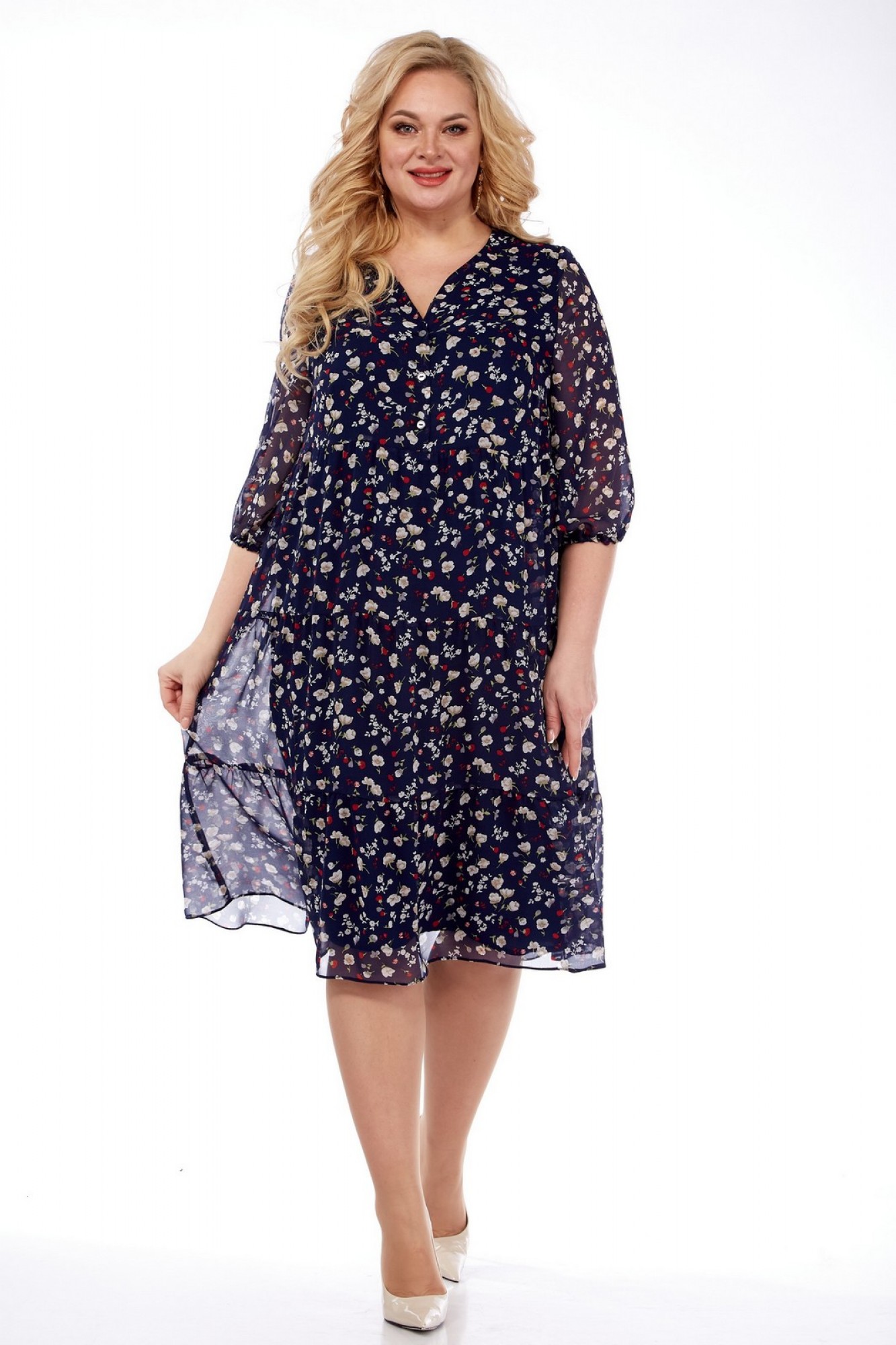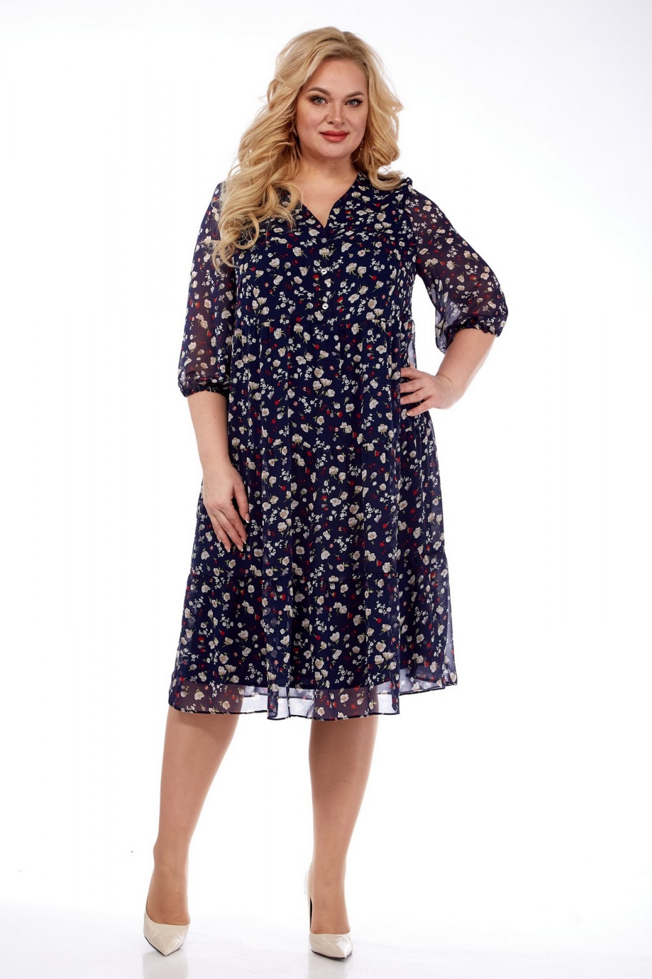 Платье Ольга Стиль С795 синий в бело-красные цветы с ID товара 363707