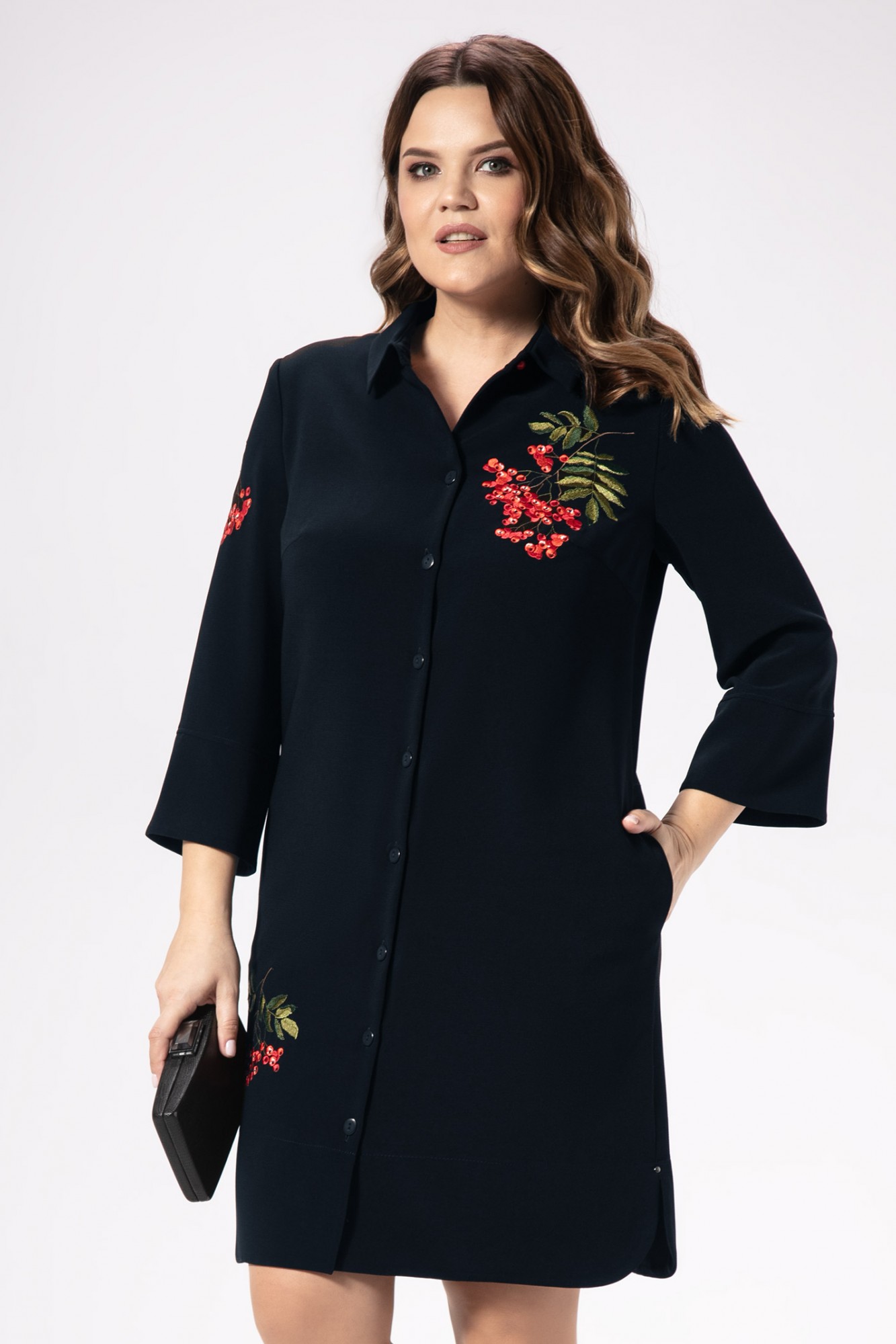 Модное теплое платье - настоящая находка для демисезонного гардероба современной уверенной в себе девушки. Оно послужит для создания необычных интересных образов в деловом, классическом, романтическом стилях. Черное платье женское декорировано авторской вышивкой с изображением растений и цветов, поэтому не требует дополнительных украшений. Вам достаточно подобрать нужную обувь, аксессуары - и роскошный образ готов. Платье пиджак пошито в прямом фасоне, делающем силуэт стройнее и выше. Воротник рубашечного типа и длинный рукав 7/8 со шпицей придают изделию строгий вид. Платье женское офисное застегивается на петли пуговицы, расположенные по центральной планке. Боковые швы дополнены прорезными карманами и невысокими разрезами. Платье осеннее женское изготовлено из мягкой, приятной на ощупь ткани с гладкой поверхностью. Вы можете приобрести трикотажное платье женское, чтобы всегда быть в центре внимания и получать комплименты от окружающих.