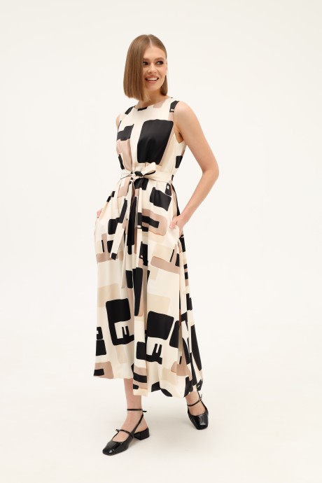 Платье PUR PUR 11-293 /4 бежевый, черный, принт абстракция