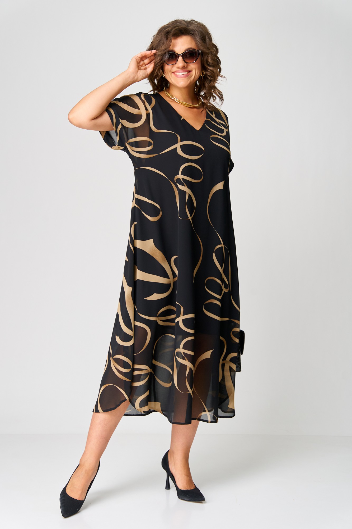 Платье EVA GRANT 7116 черный с принтом