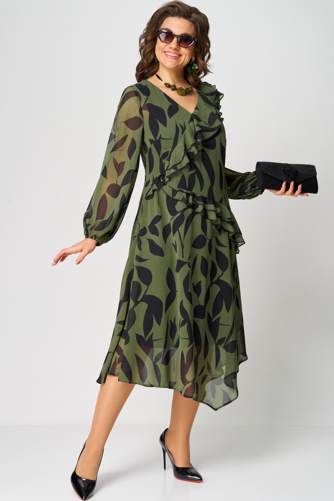 Платье EVA GRANT 7122 принт олива