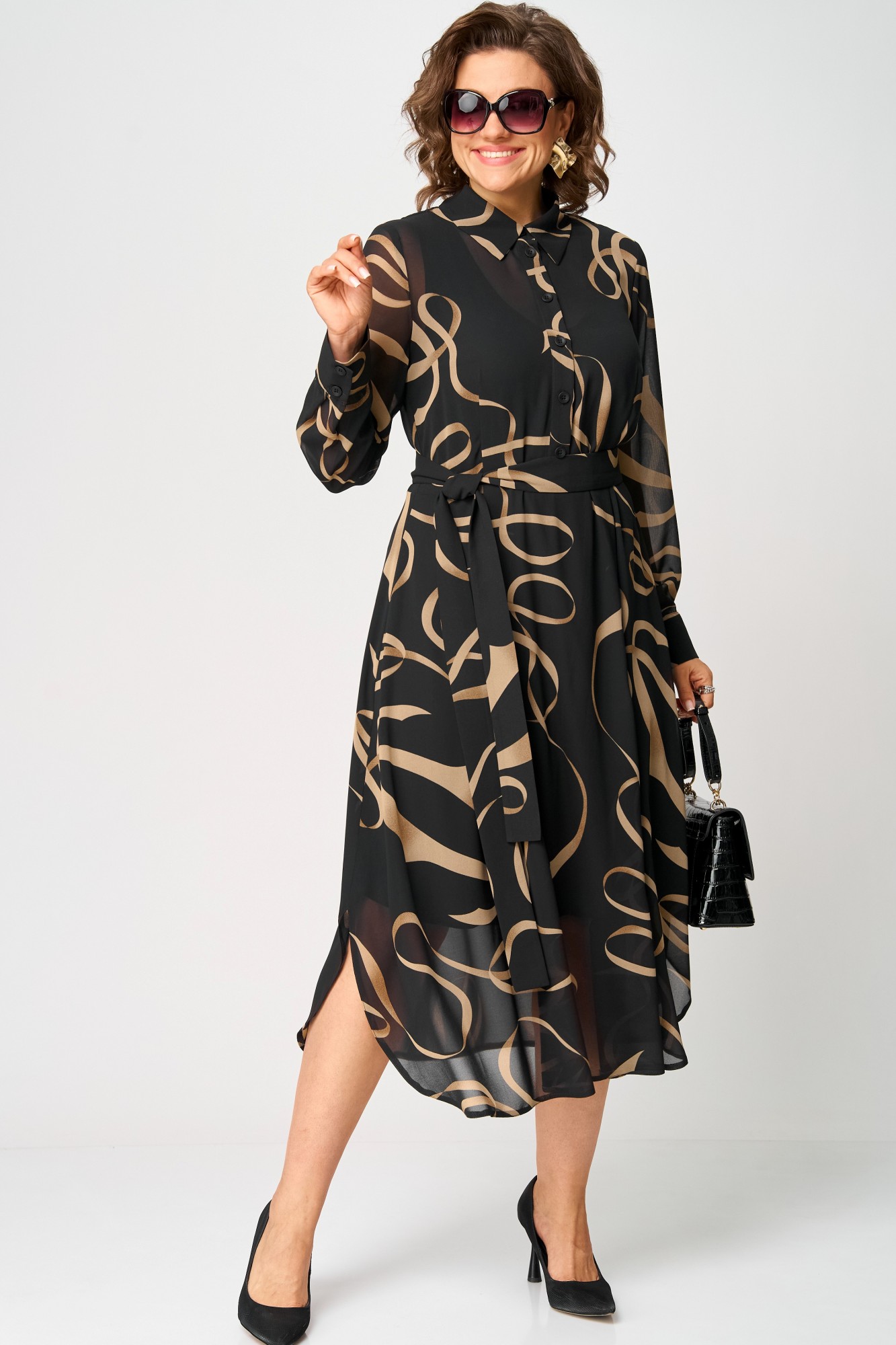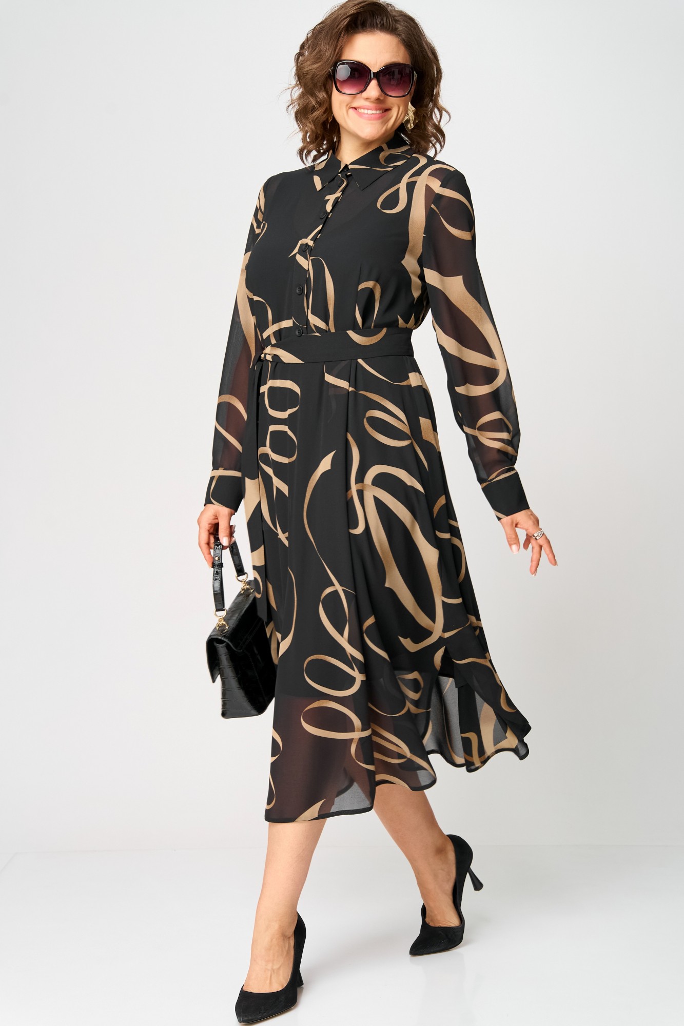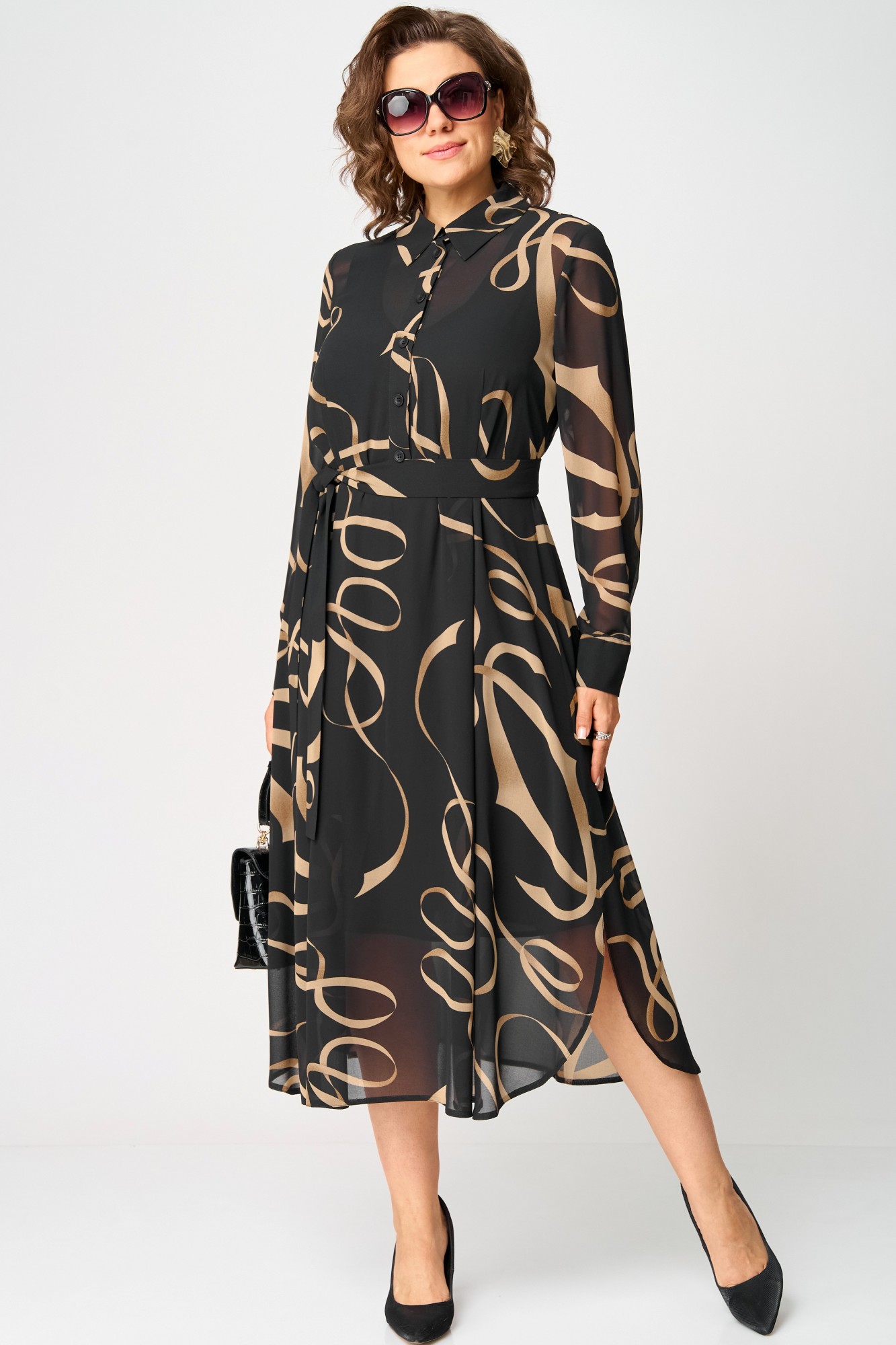 Платье EVA GRANT 7303 черный с принтом