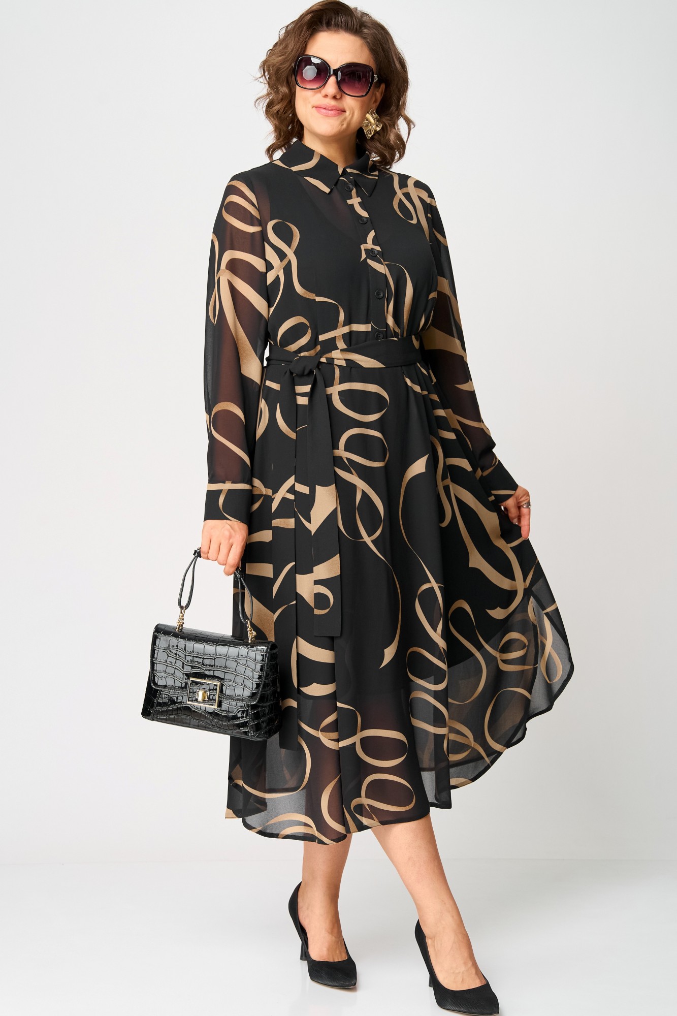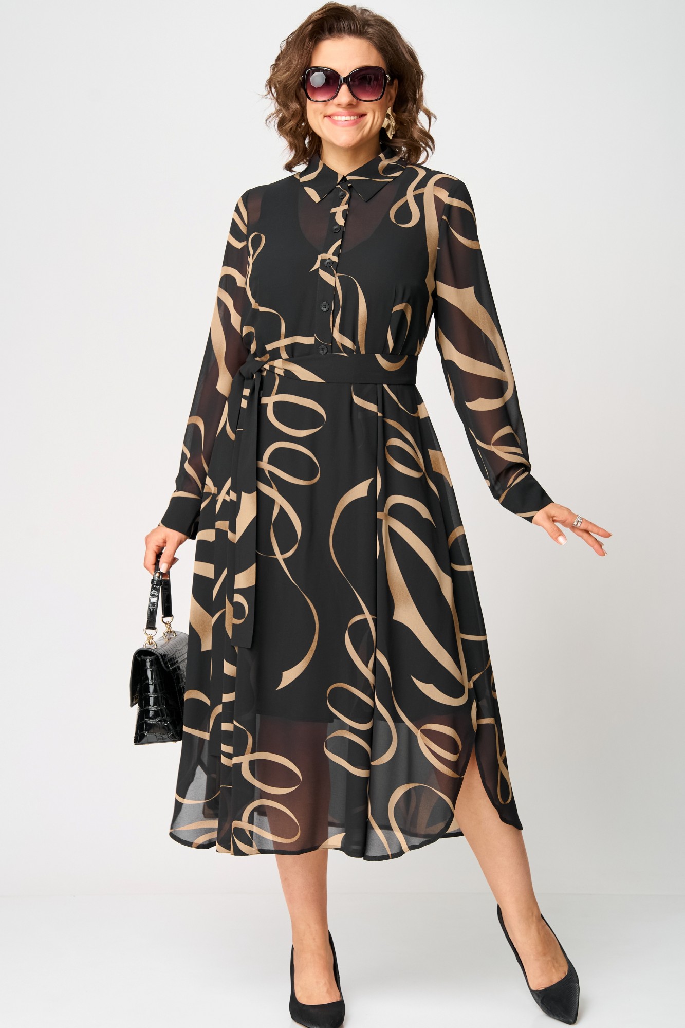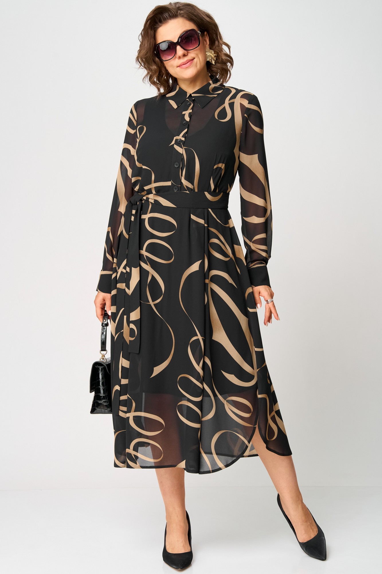 Платье EVA GRANT 7303 черный с принтом