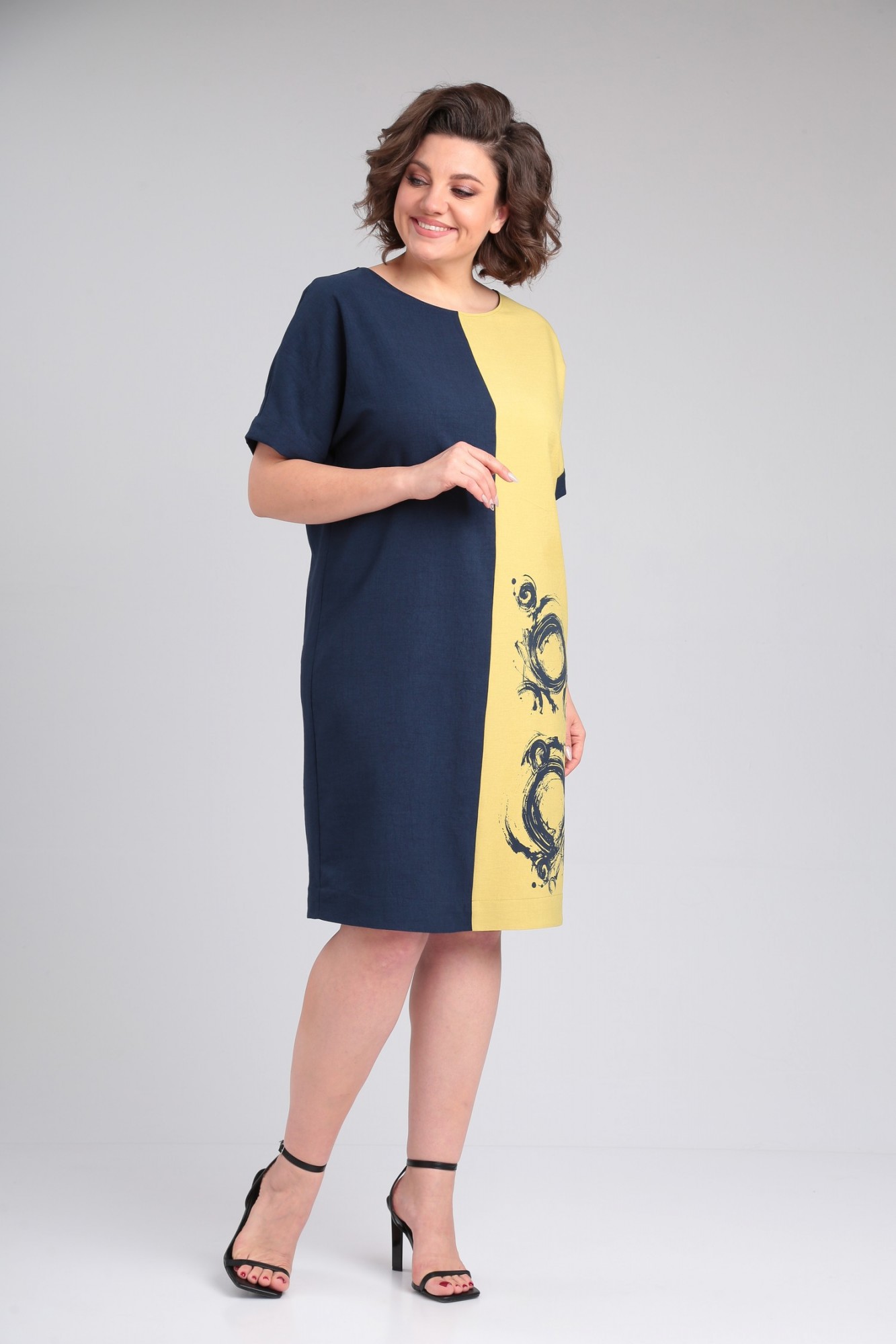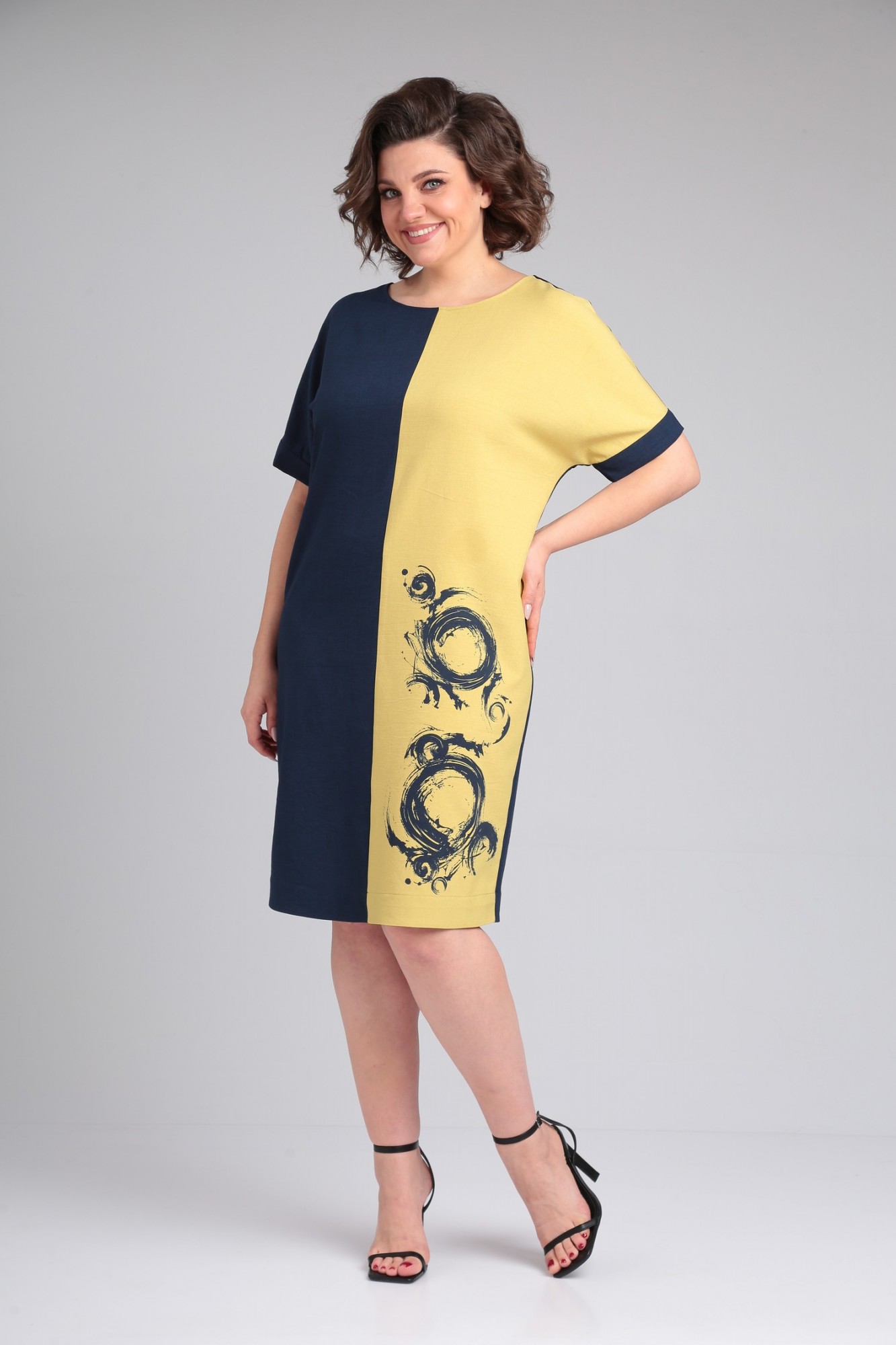 Платье Ладис Лайн 1495 горчица, темно-синий с ID товара 408720