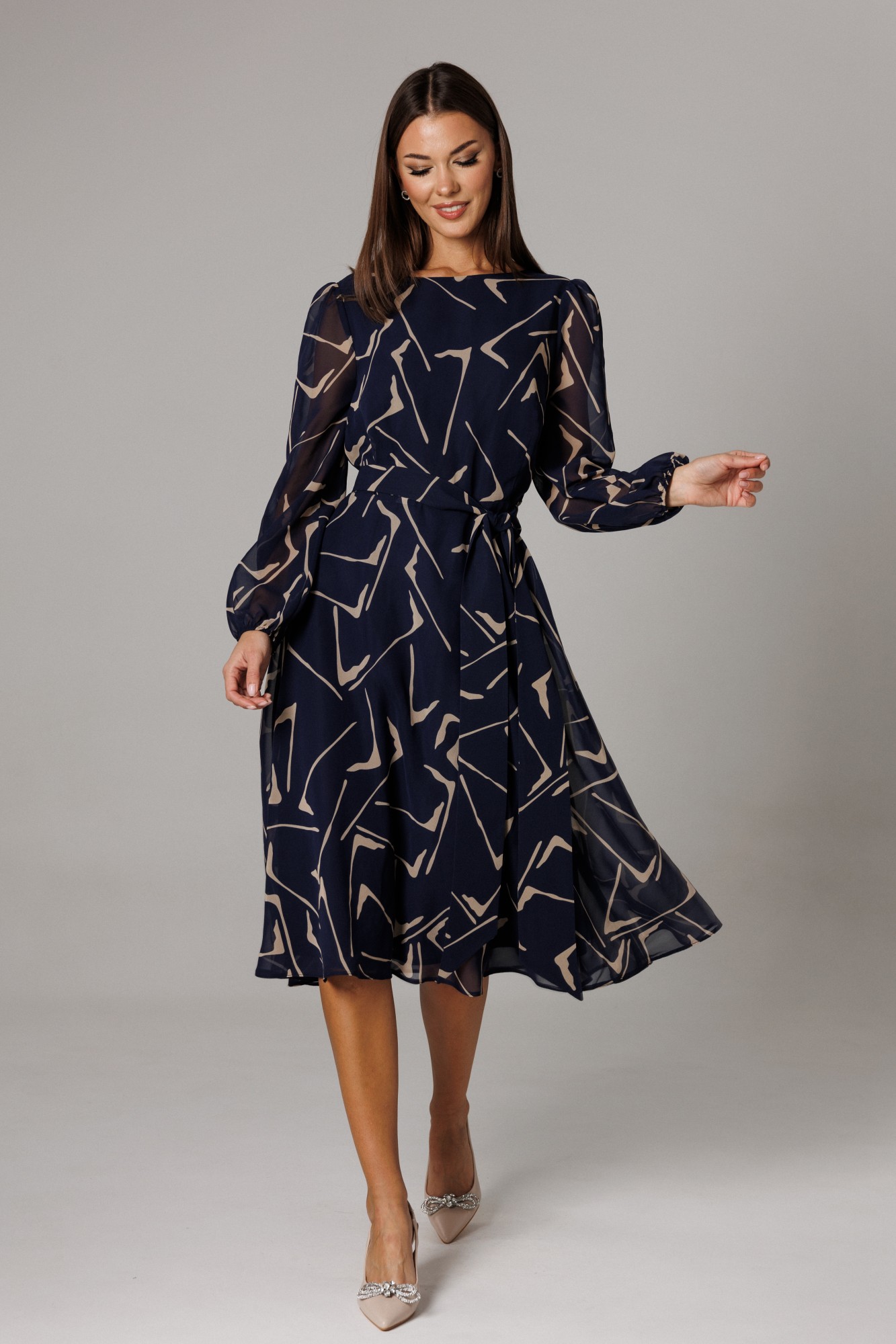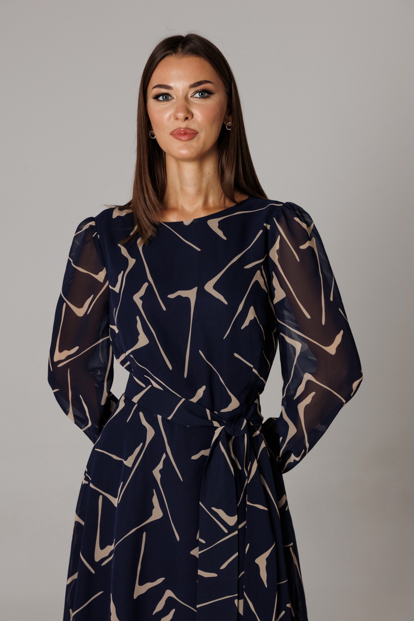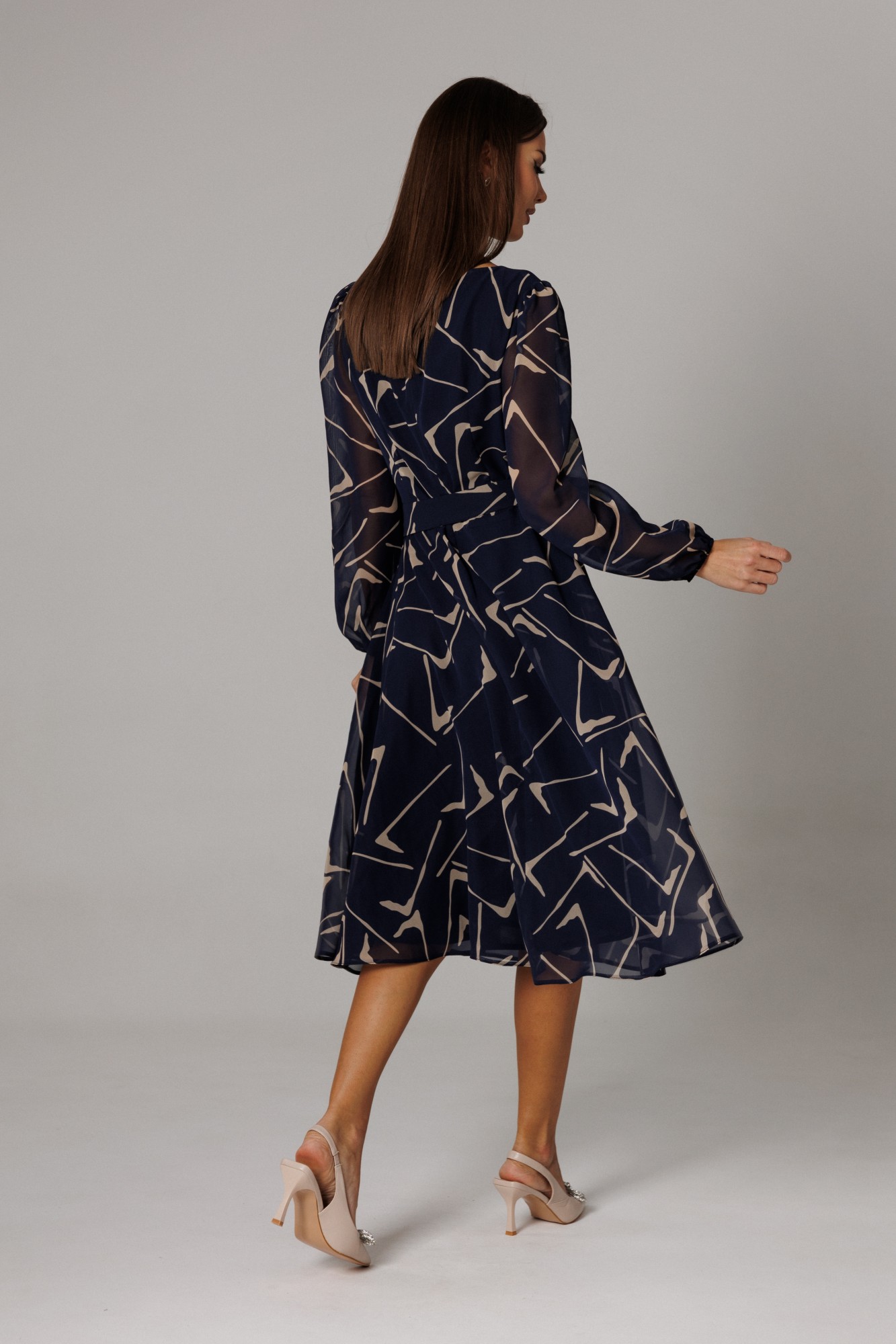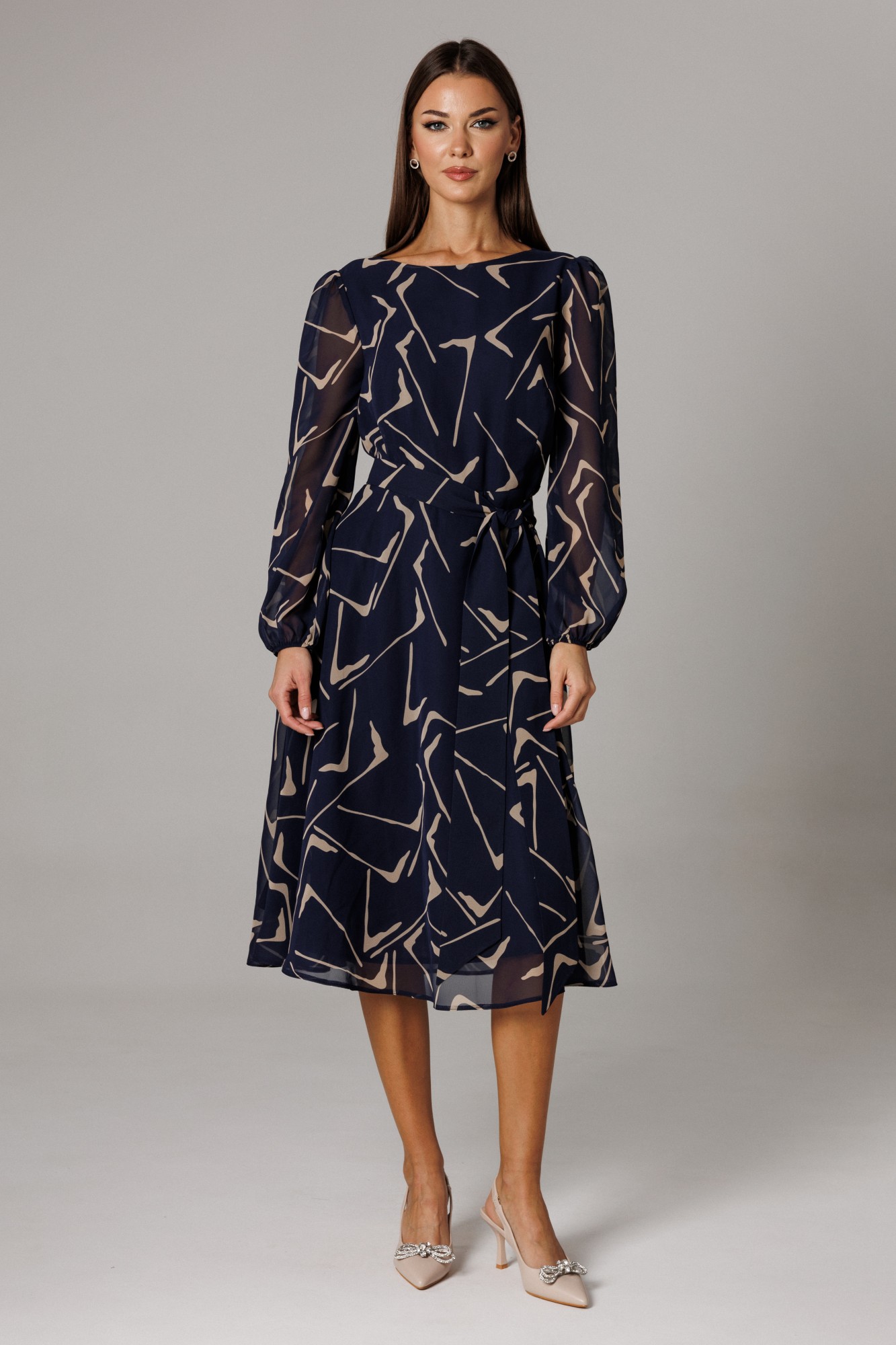 Платье Ларс Стиль 1161 сине-бежевый принт