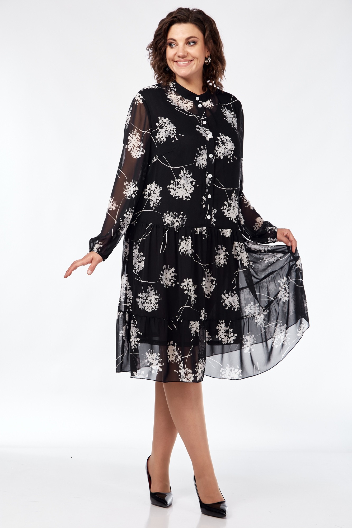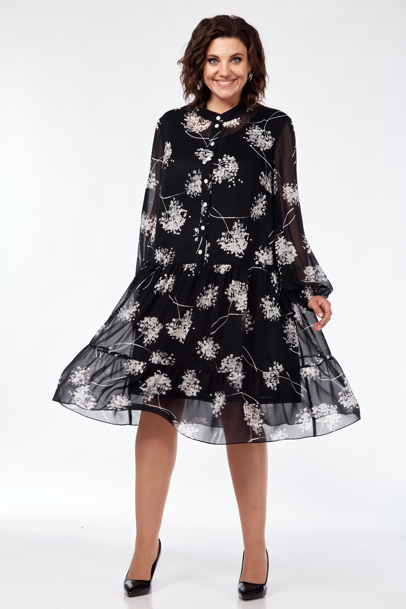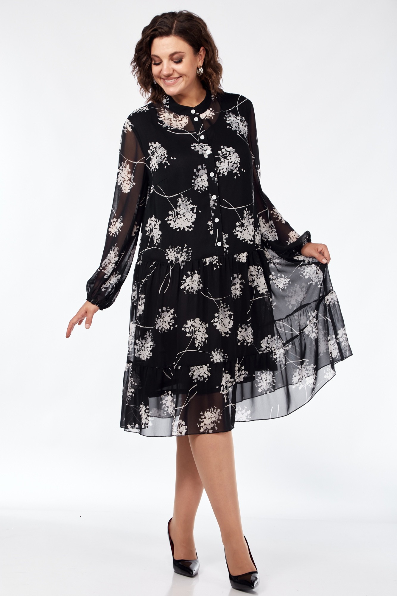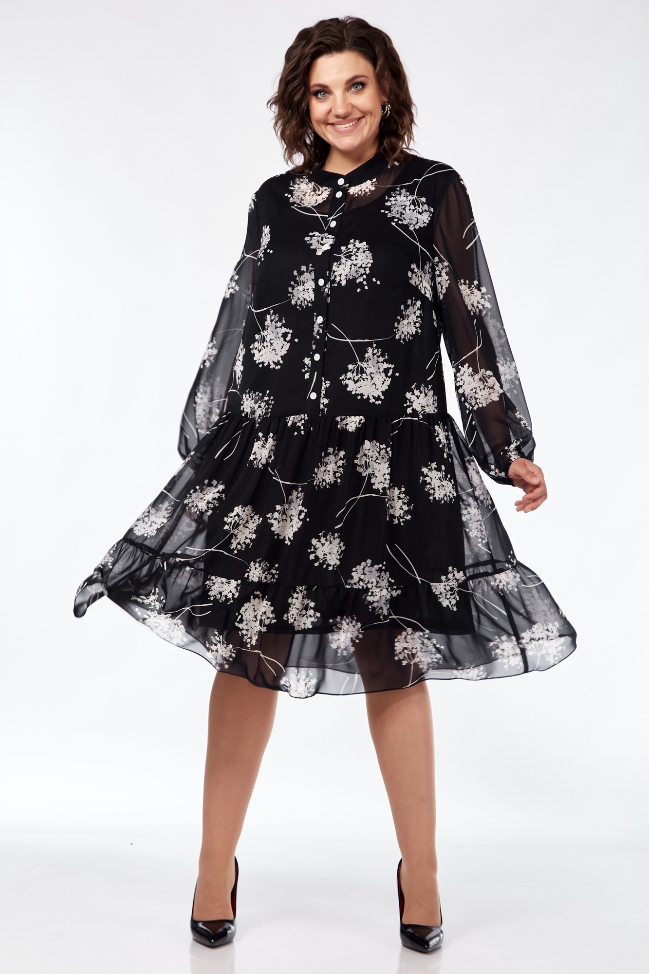 Платье Мублиз плюс 102 черный одуванчики с ID товара 394380