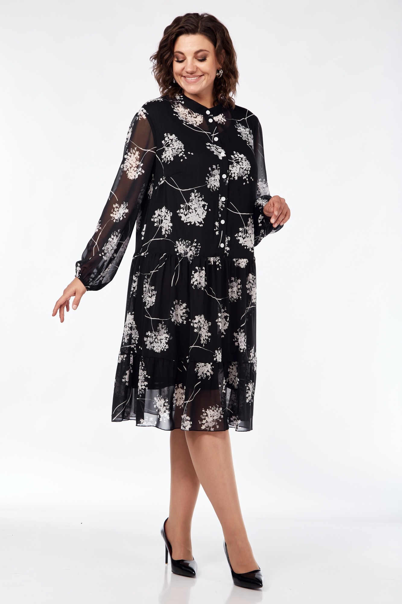 Платье Мублиз плюс 102 черный одуванчики с ID товара 403261