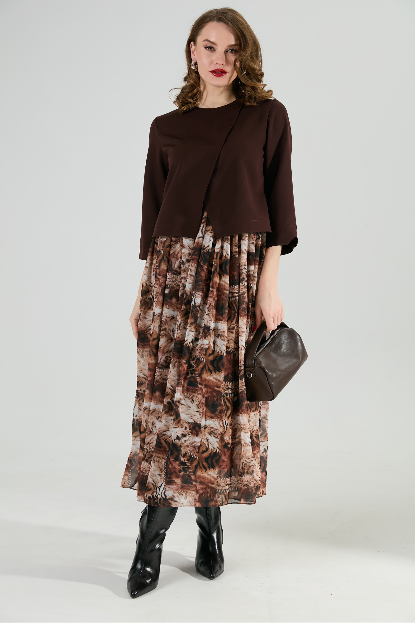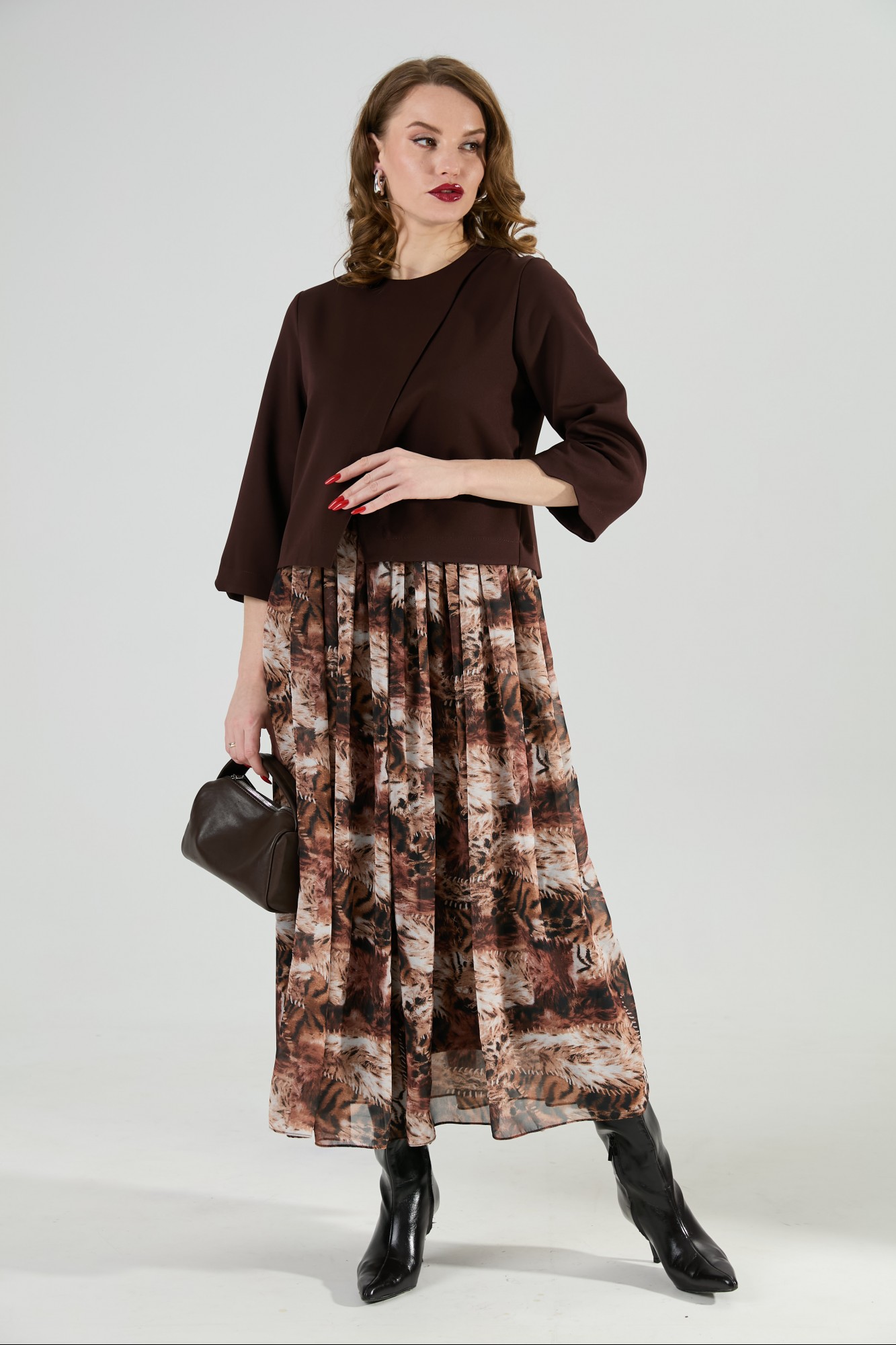 Платье NikVa н1007 -1 шоколад и тигровая абстракция
