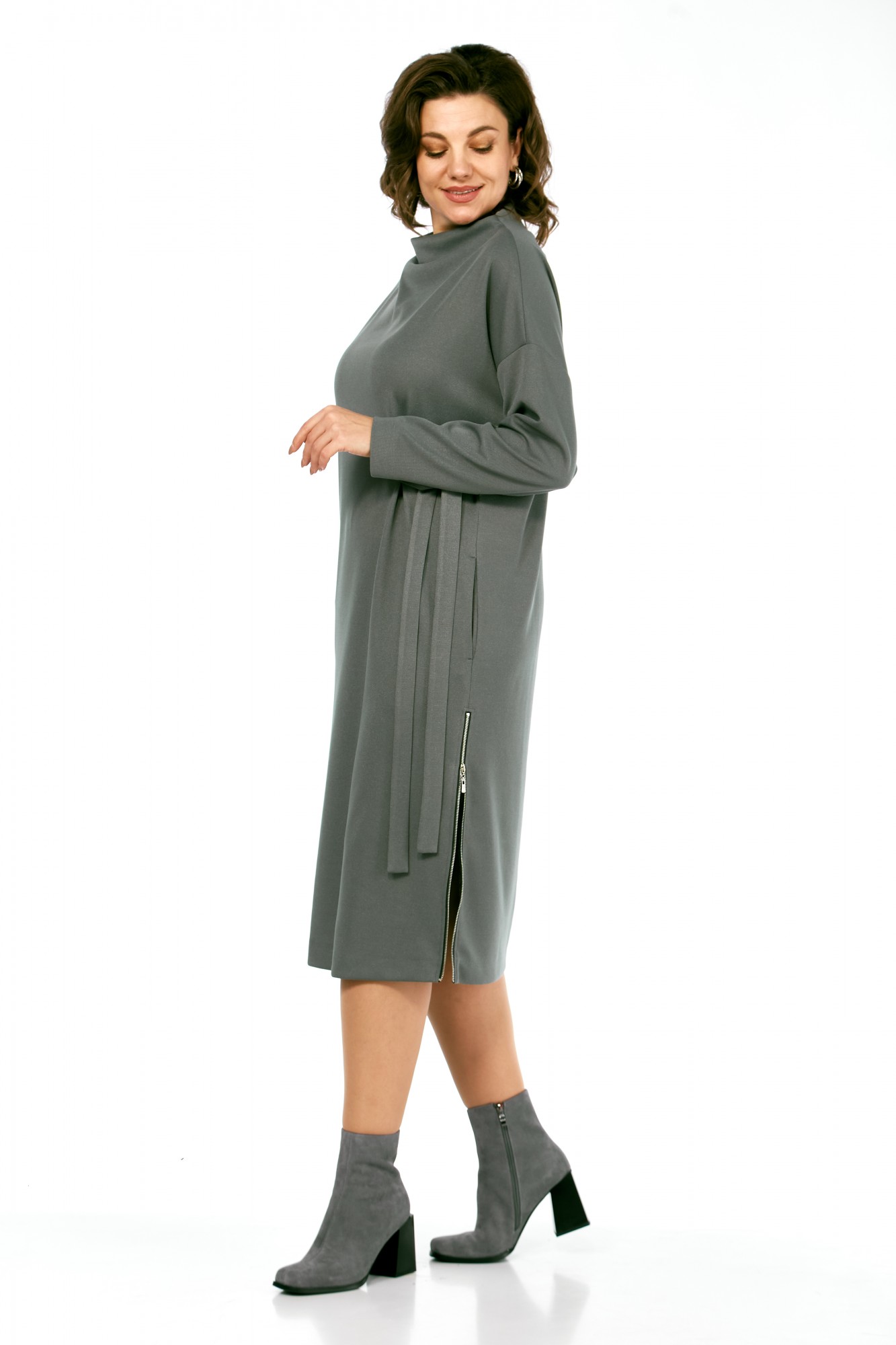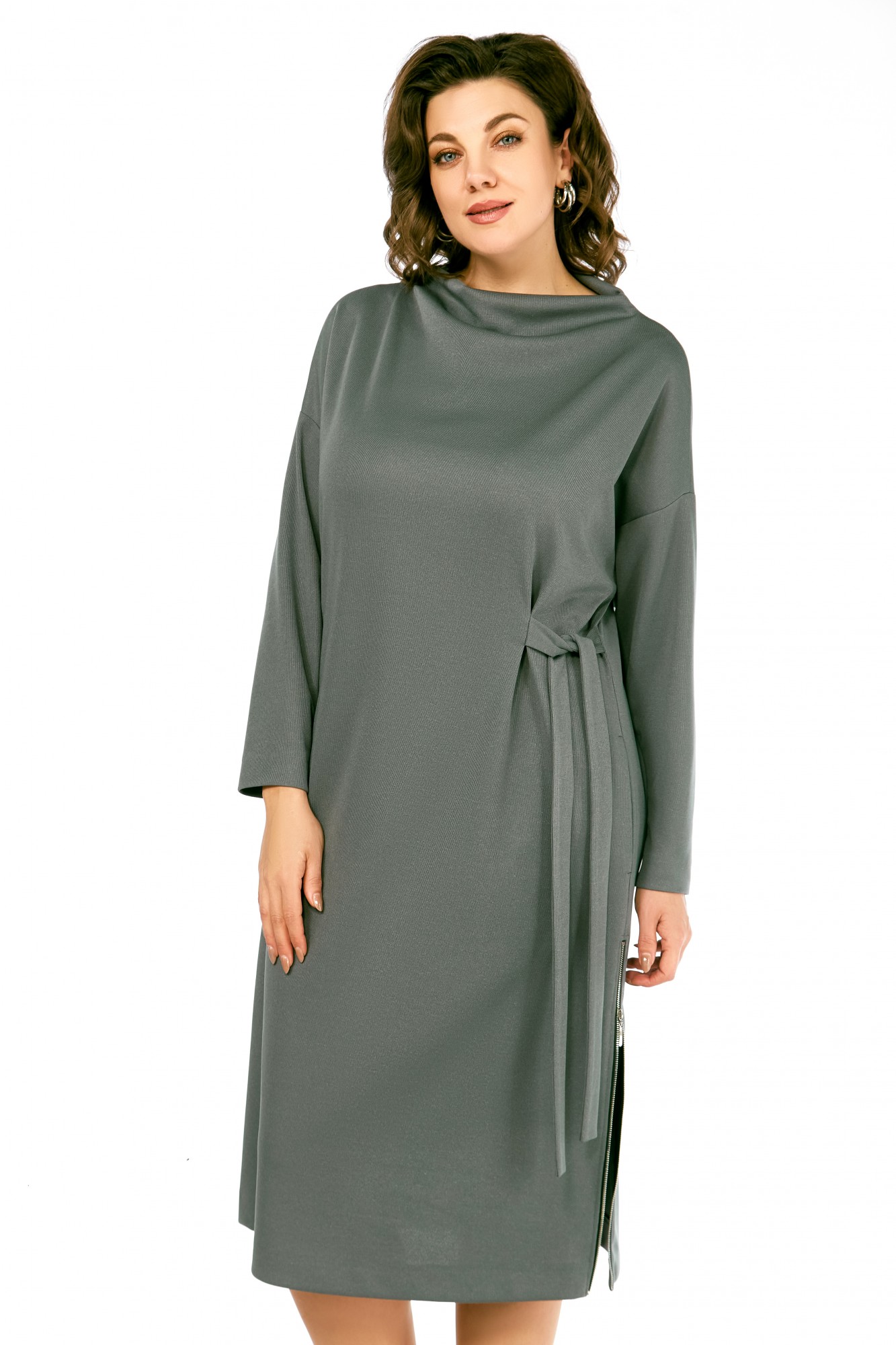 Платье Ольга Стиль С976 серо-зеленый