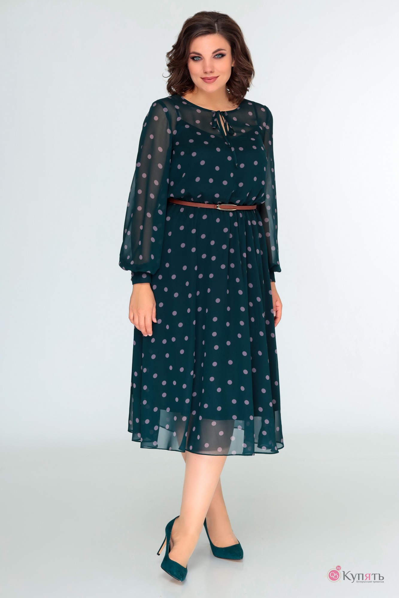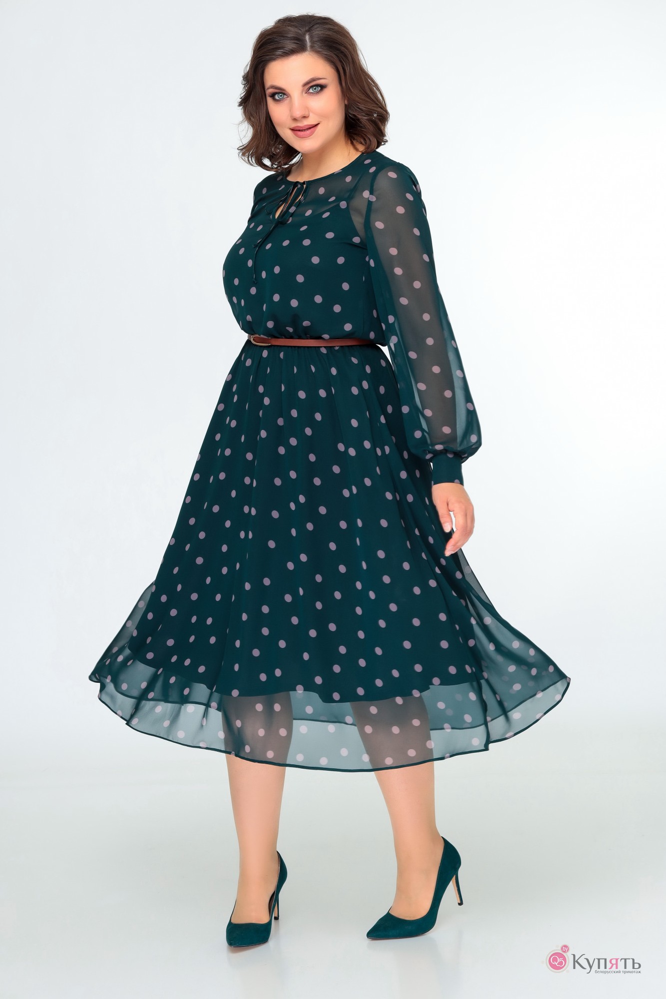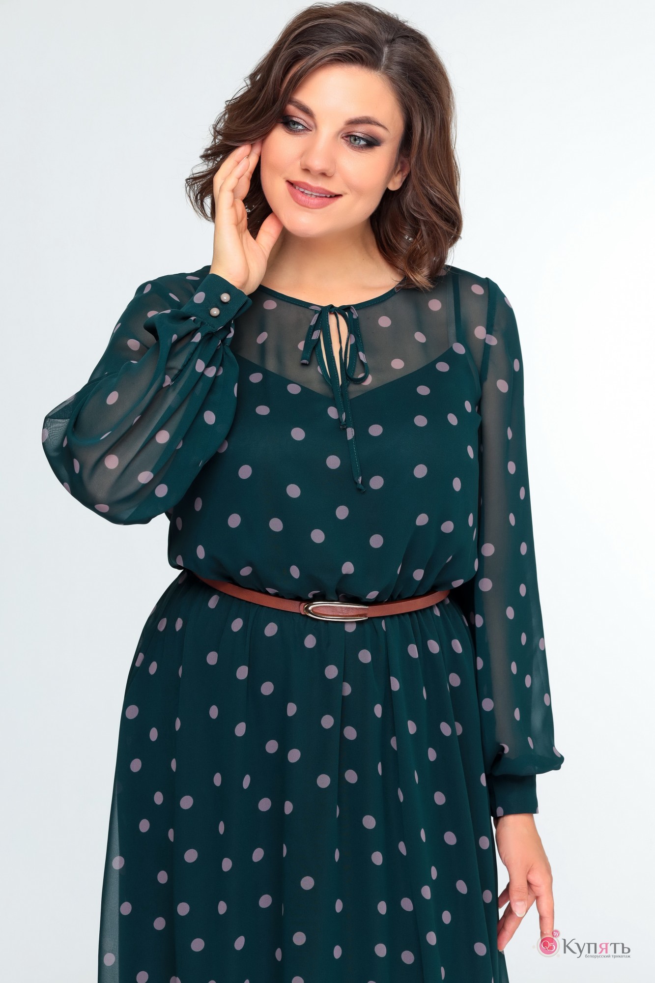 Платье Swallow 482 Зеленый в бежевый горох с ID товара 398444