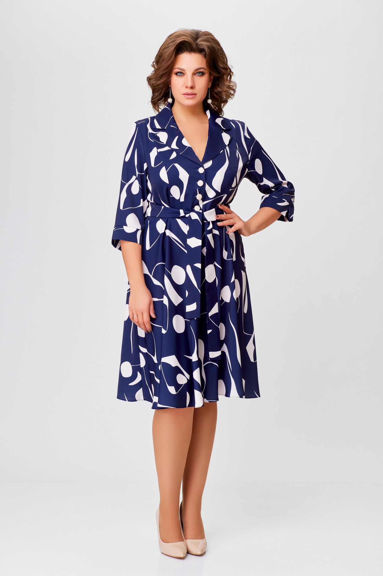 Платье Swallow 769 -1 Синий, молочный, принт