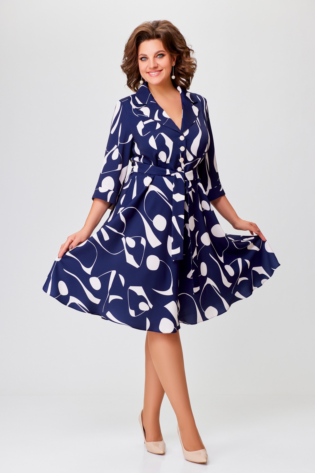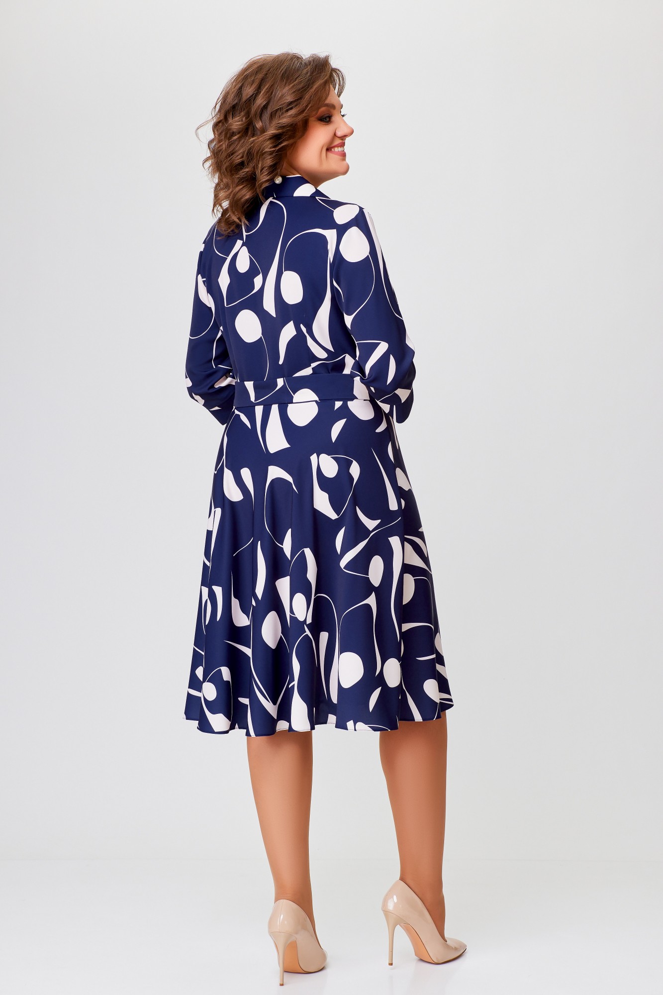 Платье Swallow 769 -1 Синий, молочный, принт