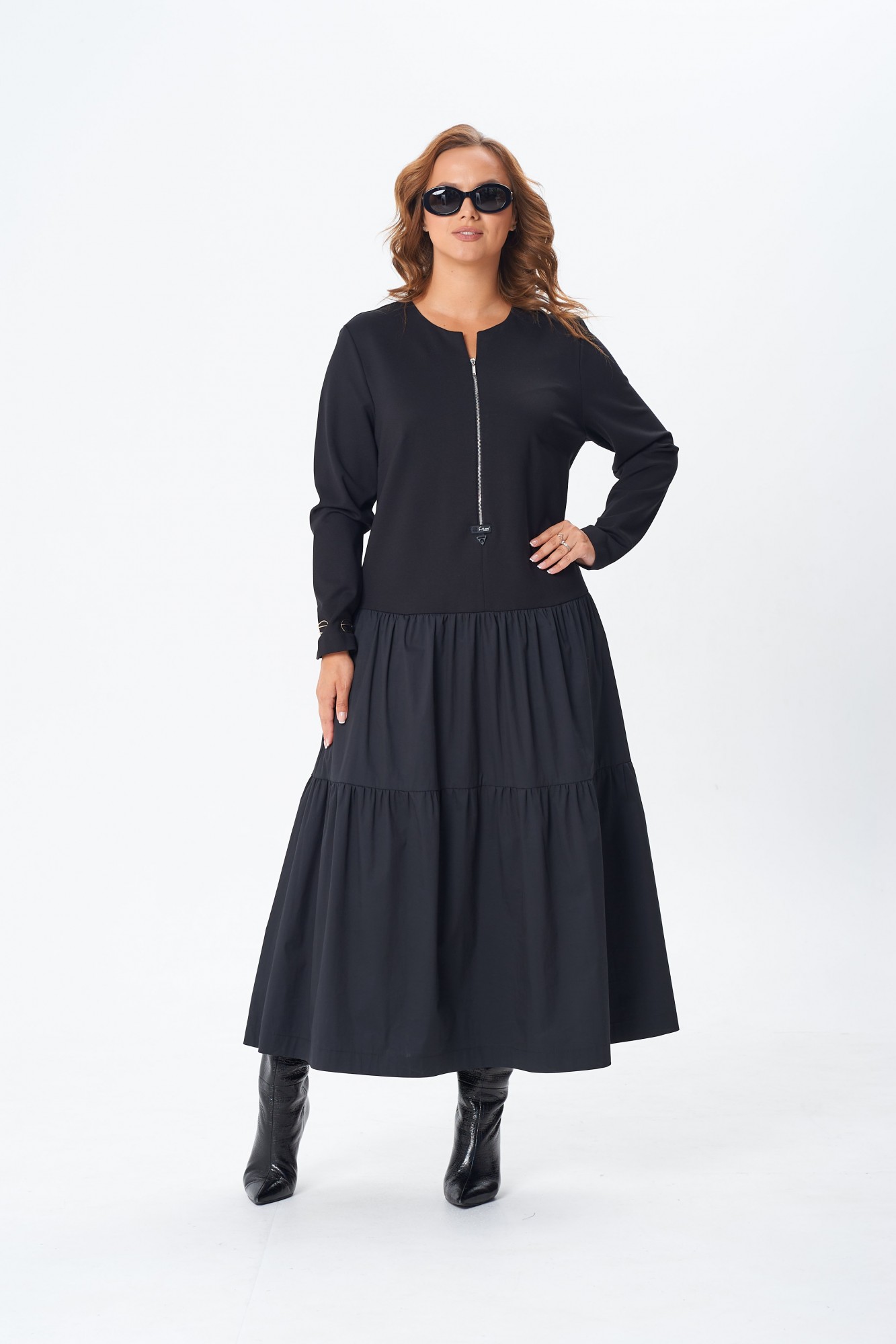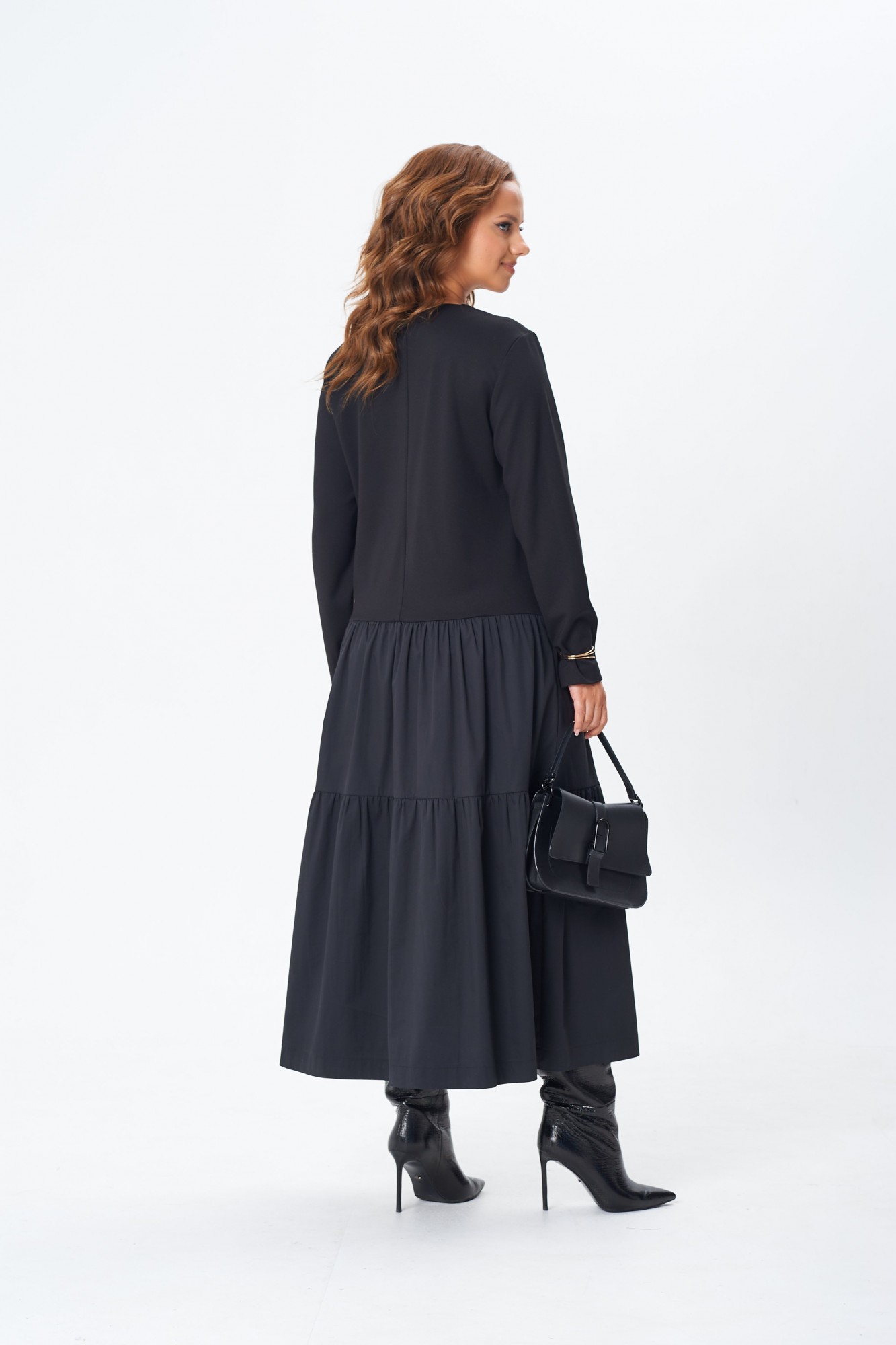 Состав верхней части платья: вискоза 35%, полиэстер 60%, эластан 5%. Состав нижней части платья: хлопок 98%, эластан 2%.