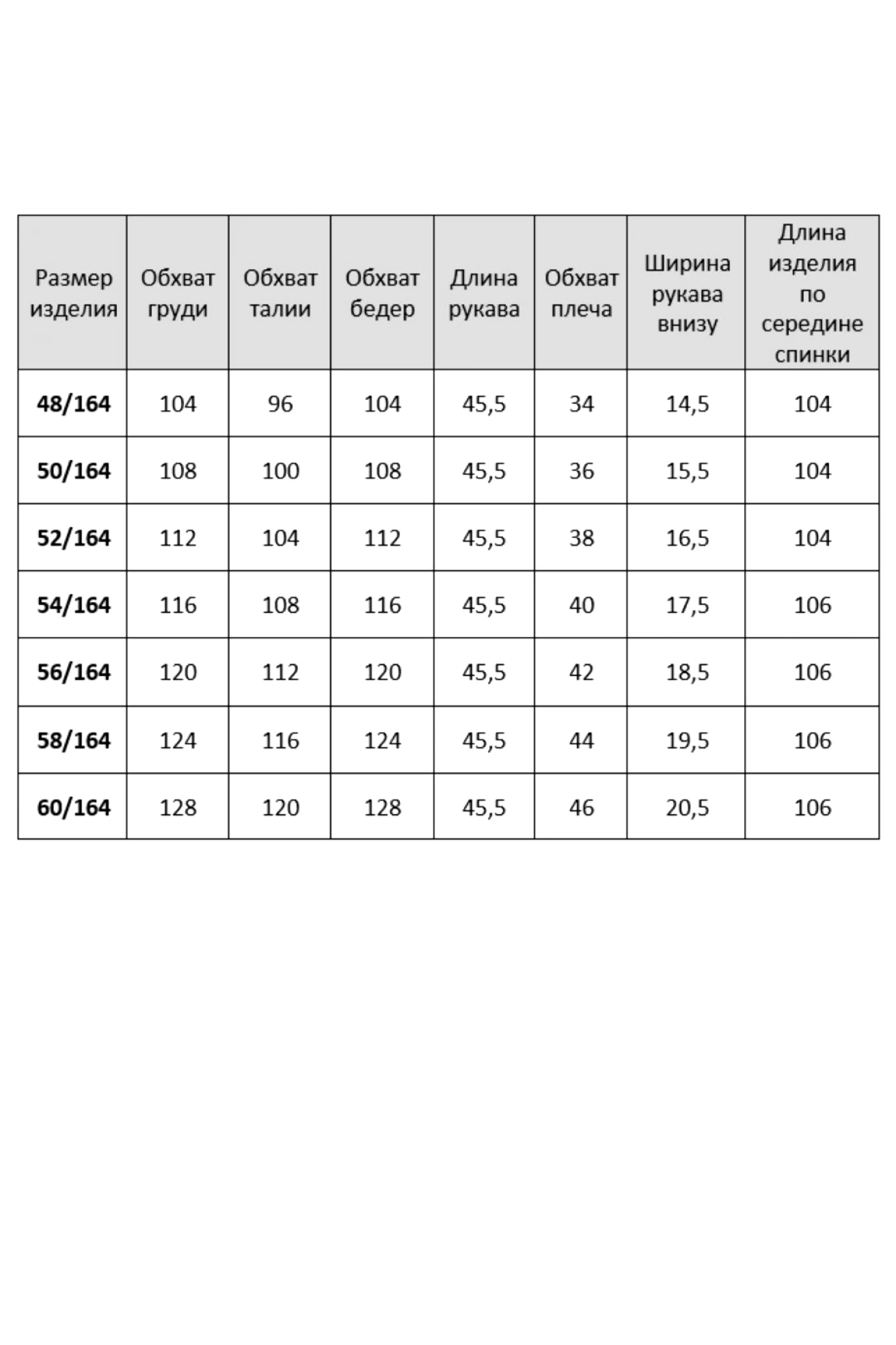 Таблица размеров