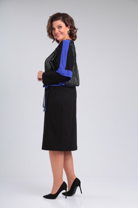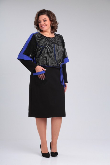 Удобное женское, как повседневное, так и нарядное платье из комфортного комбинированного трикотажа с модным принтом. Платье с округлой горловиной, с нагрудными вытачками, отрезное по линии талии спереди, с накладным карманом из сетки с декором по линии бедер на юбке. Рукав одношовный, втачной, длинный, спинка со средним швом и вытачками . Платье дополняет воздушная , лёгкая накидка из сетки с декоративными вставками в цвет ярких полос платья. Комплект подчеркивает элегантность ,стиль, стремление выделяться.