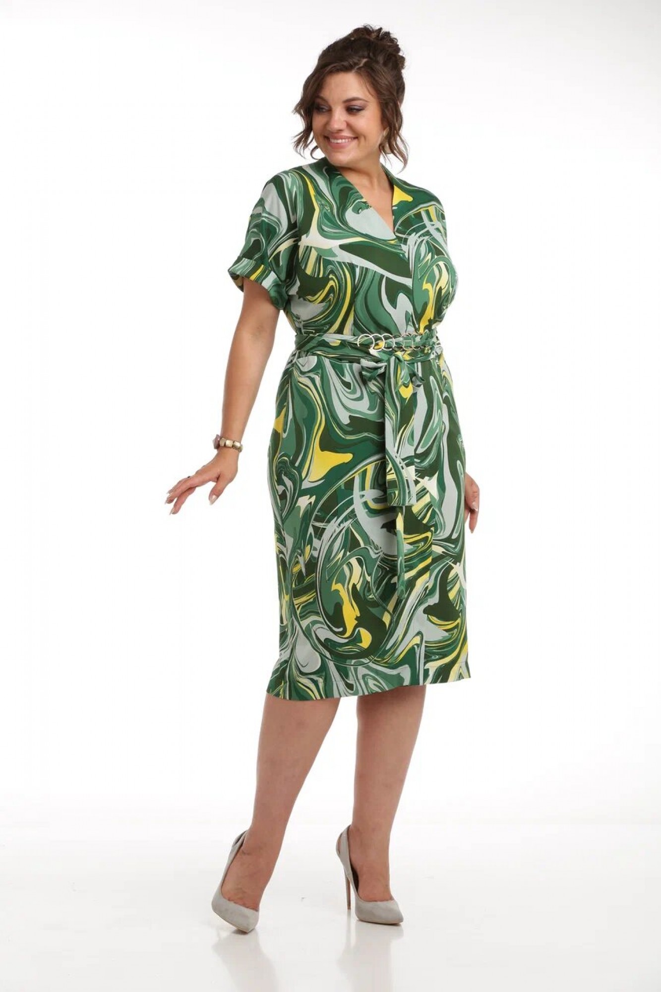 Платье нарядное женское из смесовой ткани с абстрактным печатным рисунком. Платье прямого силуэта с запахом, отрезное по линии талии. Лиф платья со средним швом и талиевыми выточками. Спинка цельная с талиевыми выточками. Рукав платья цельнокроенный, по низу - притачные манжеты. Горловина V-образной формы. Изюминкой данного платья служит съемный пояс из основной ткани с декоративными элементами. Замечательный вариант на мероприятие, где вы хотите почувствовать себя немного наряднее, не прилагая к этому усилий.