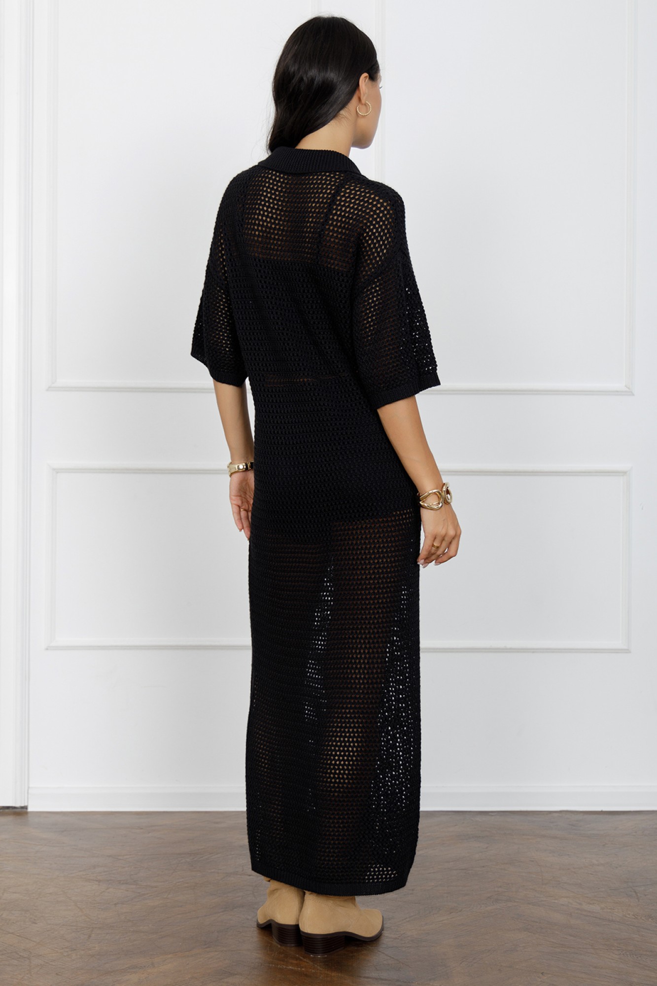 Это шикарное вязаное платье в пол — идеальный выбор для тех, кто ценит комфорт и стиль. Модель выполнена из мягкой пряжи с ажурным узором, что придает образу легкость и изящество. В платье рукава длины 7/8, V-образный вырез и свободный крой, который подчеркивает женственность и элегантность.
