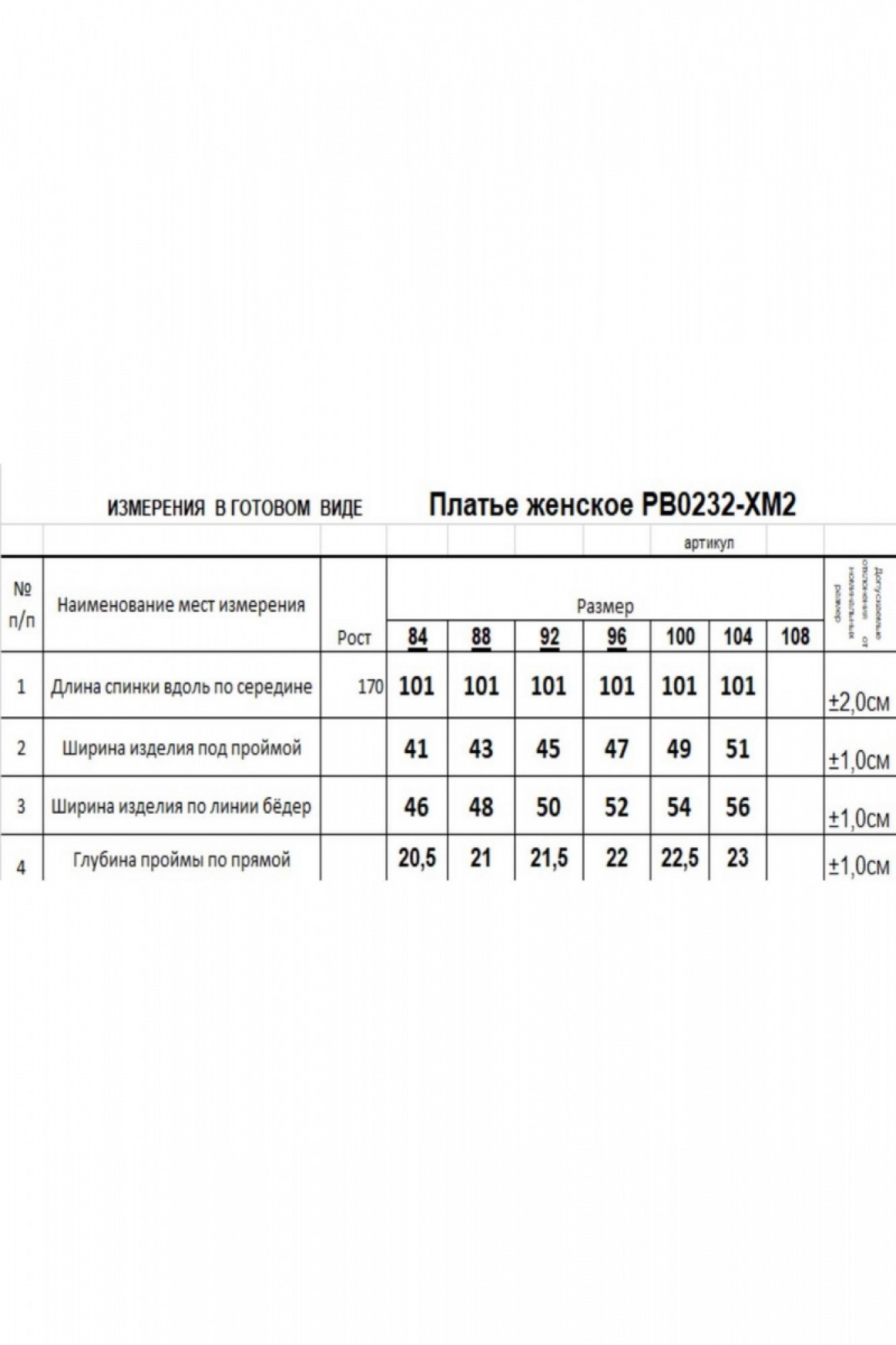 Таблица размеров