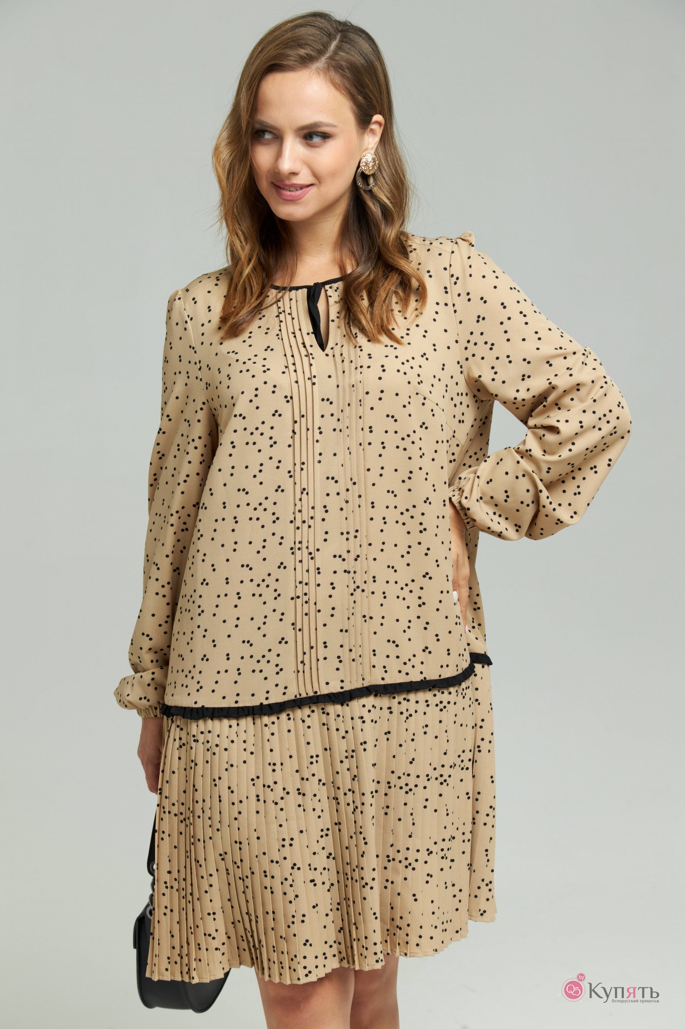 Платье SandyNa 130109 Бежевый в горох с ID товара 304488