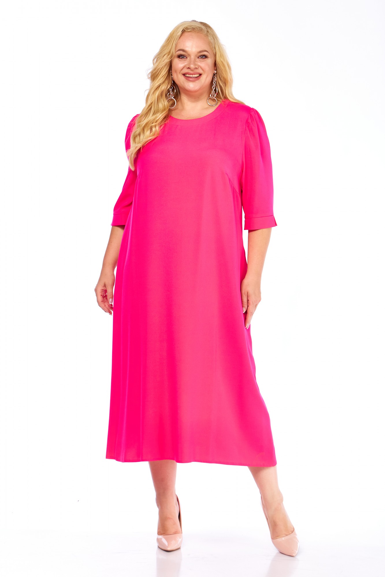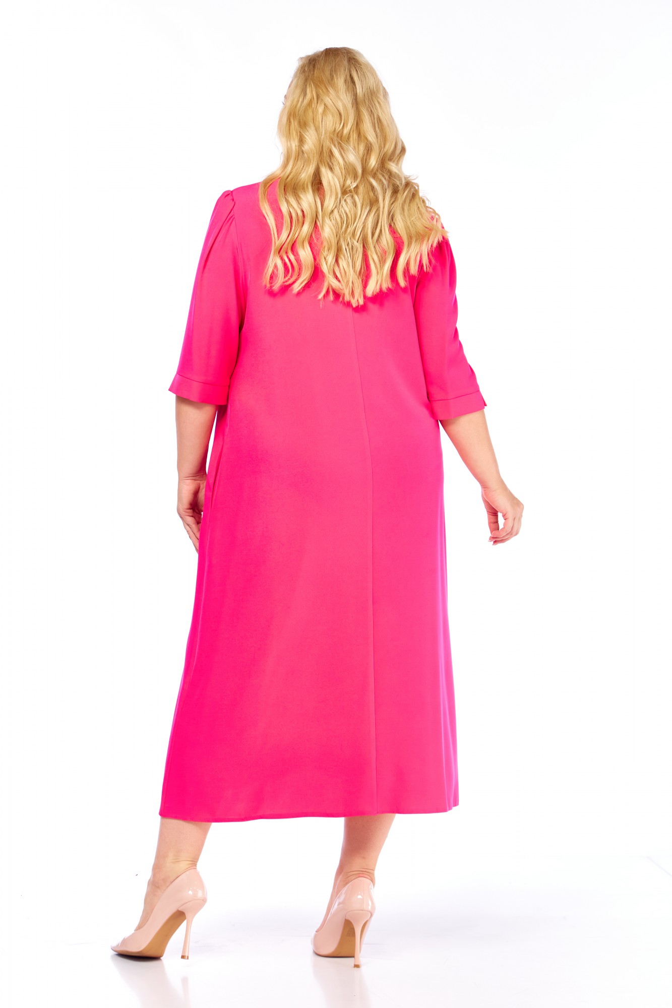 Силуэт полуприлегающий, расширенный к низу. Рукава втачные, одношовные, со сборкой по окату. Низ рукавов с манжетами. Горловина закруглённая, на обтачке, которая закреплена отделочной строчкой. Перед с нагрудными вытачками. Спинка со средним швом. В боковых швах платья на уровне линии бёдер выполнены потайные карманы.