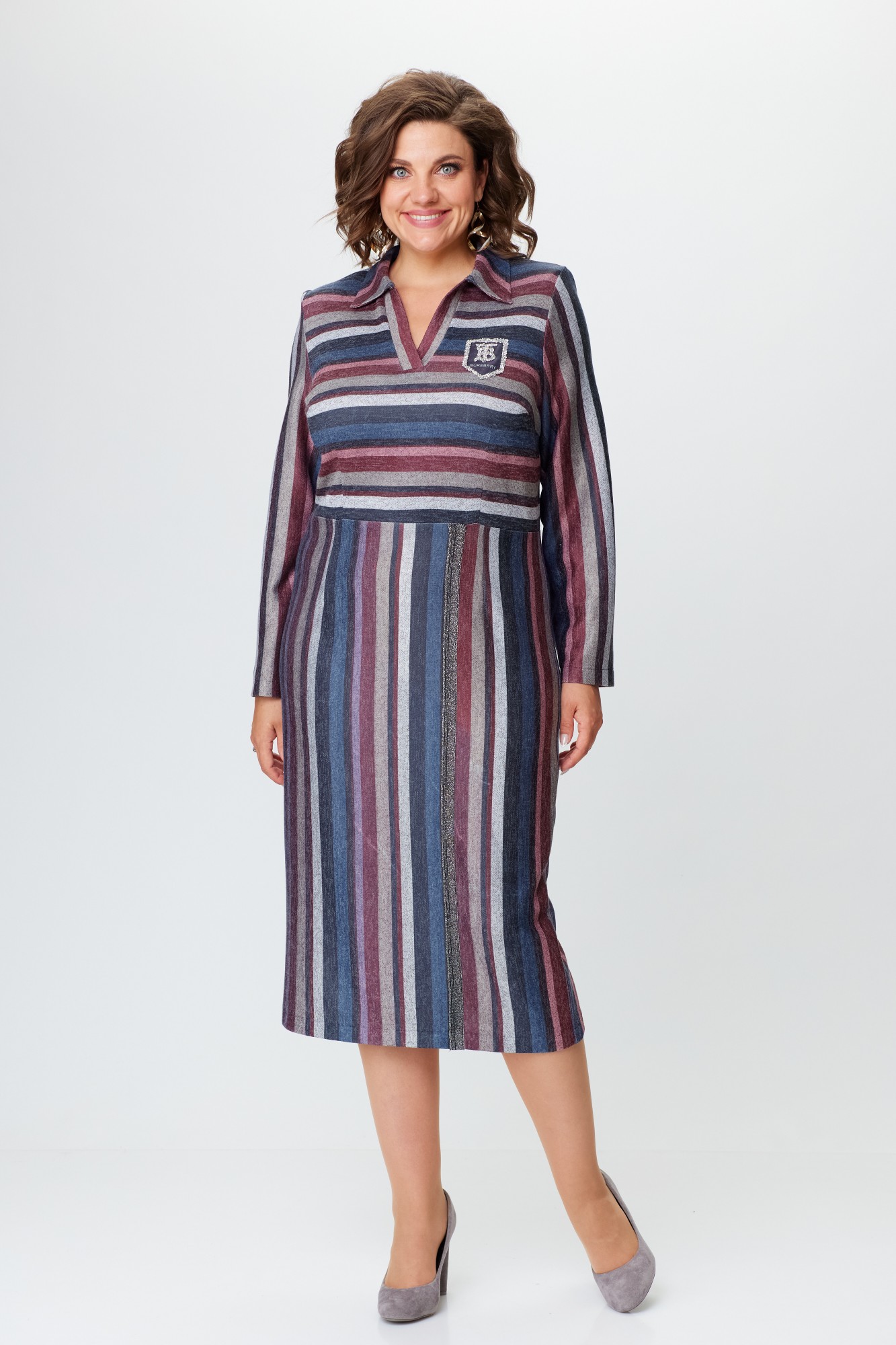Платье женское из трикотажа, который очень приятный к телу, полуприлегающего силуэта. Отрезное по линии талии. Горловина обработана отложным воротником. Рукава втачные, длинные. По переду с левой стороны нашивка .