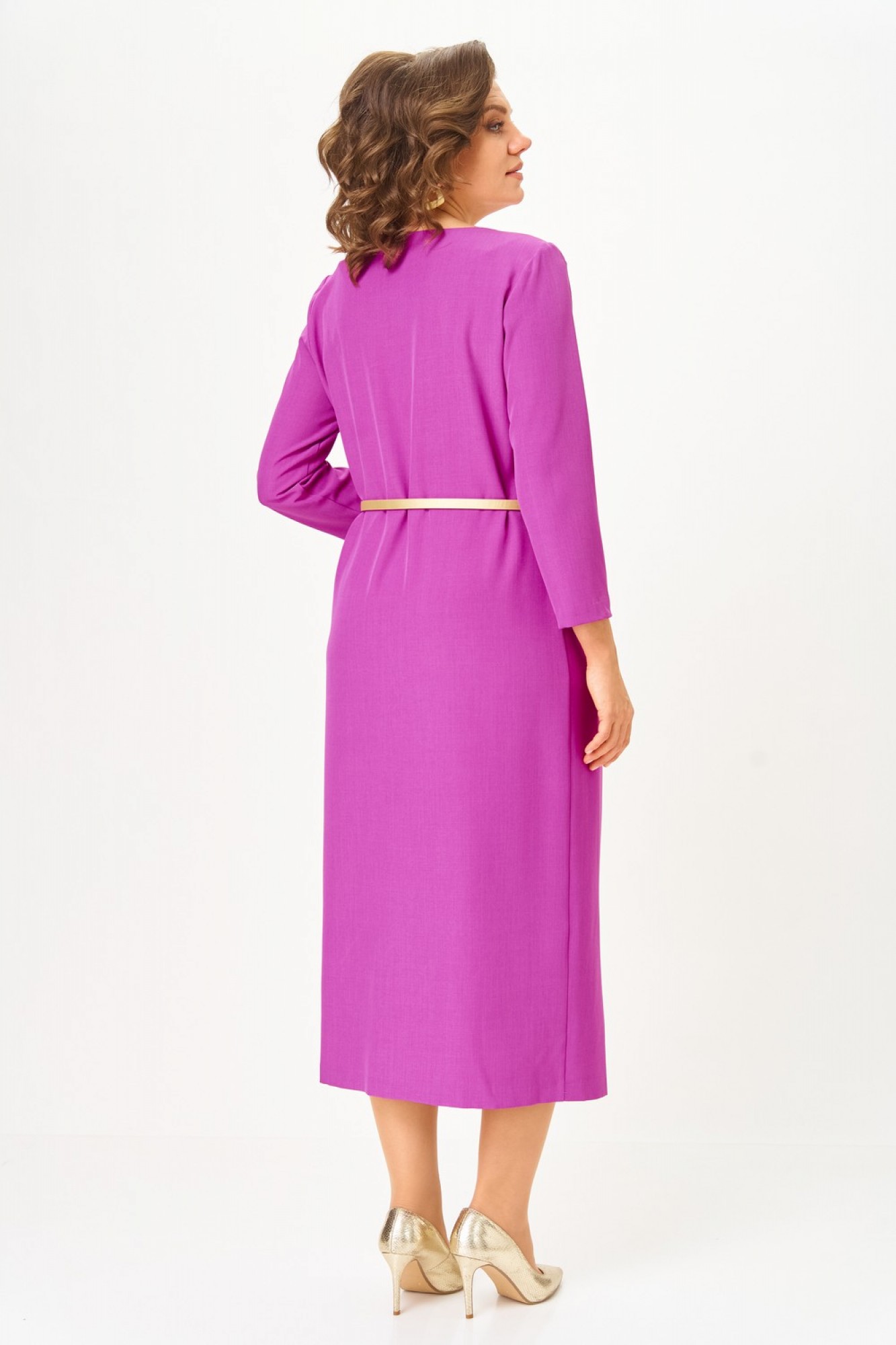 Платье женское полуприлегающего силуэта с втачным рукавом. Перед платья с горизонтальным швом по талии. Верхняя часть с вытачками по линии груди, нижняя часть со складками в области талии и карманами что обеспечивает прекрасную посадку и подчеркивает фигуру. Разрез по переду платья добавляет нотку игривости и удобства. В комплекте съемный ремень.