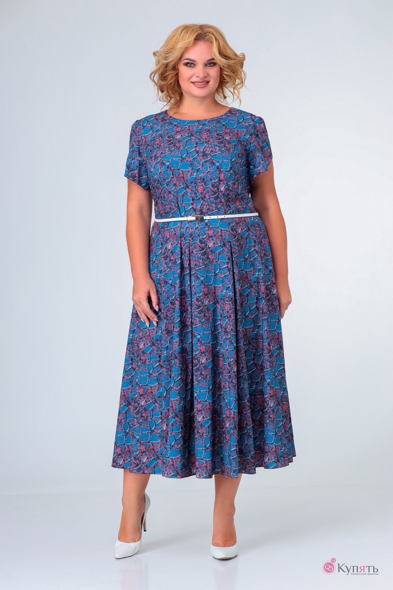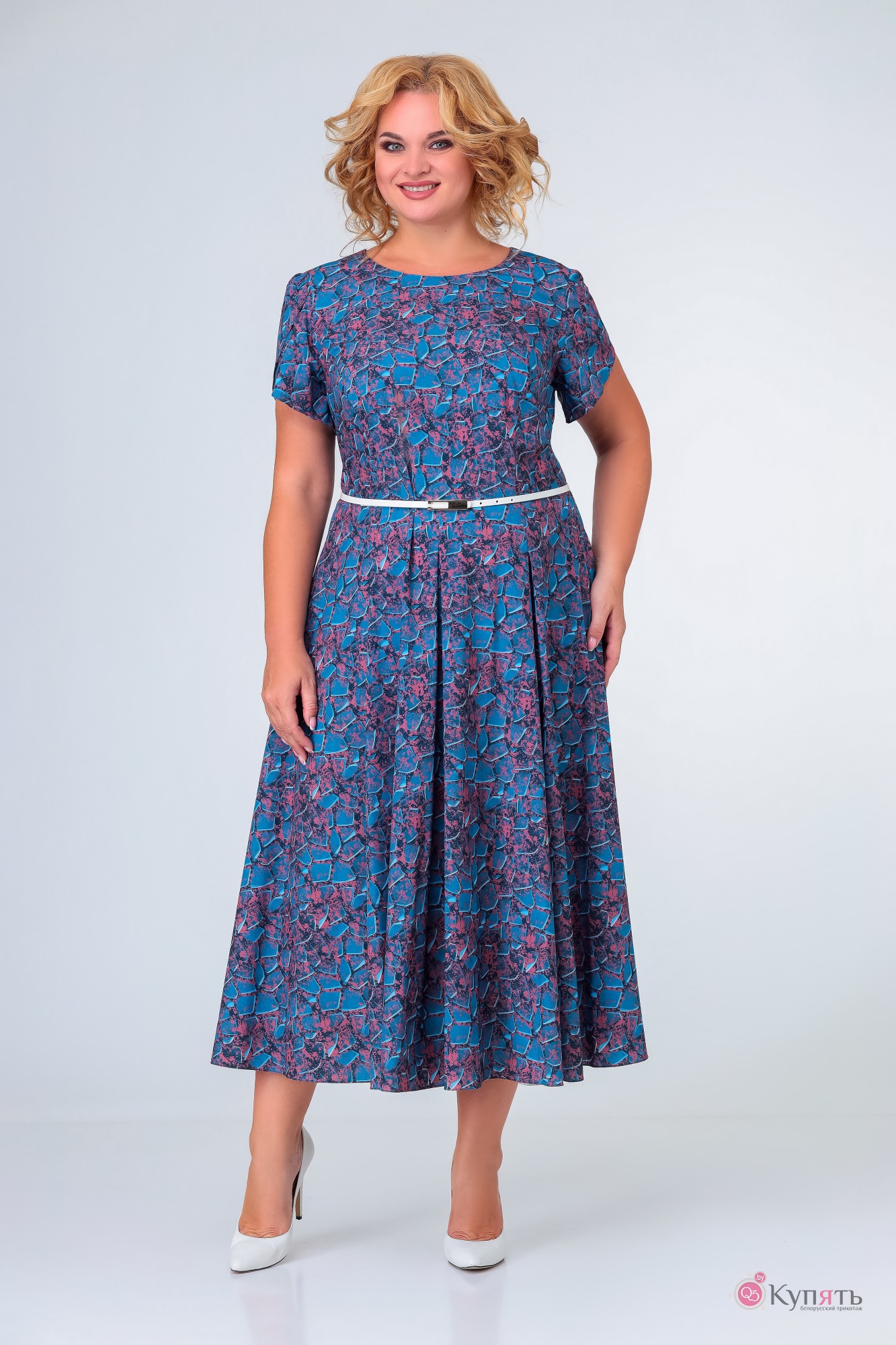Платье Swallow 385 принт «камушки» синие и бордовые с ID товара 298168