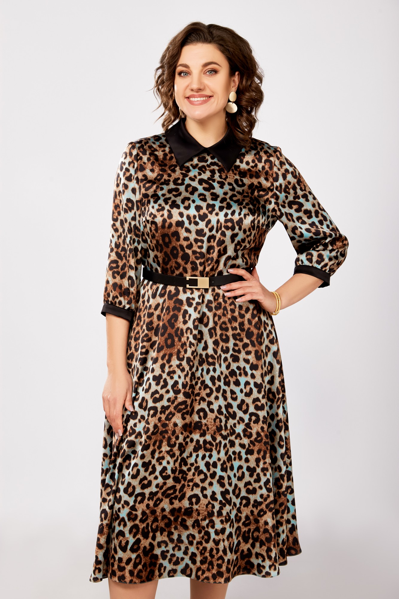 Платье Swallow 804 .1 Бледно-бирюзовый, принт леопард