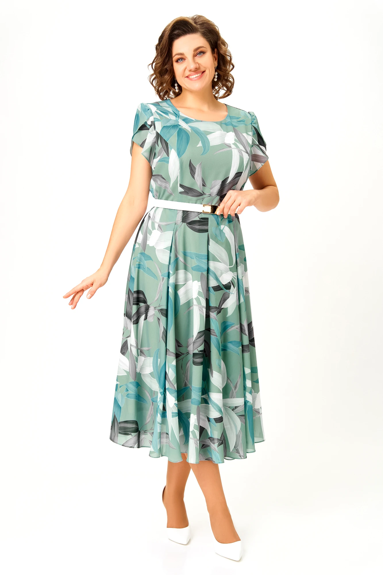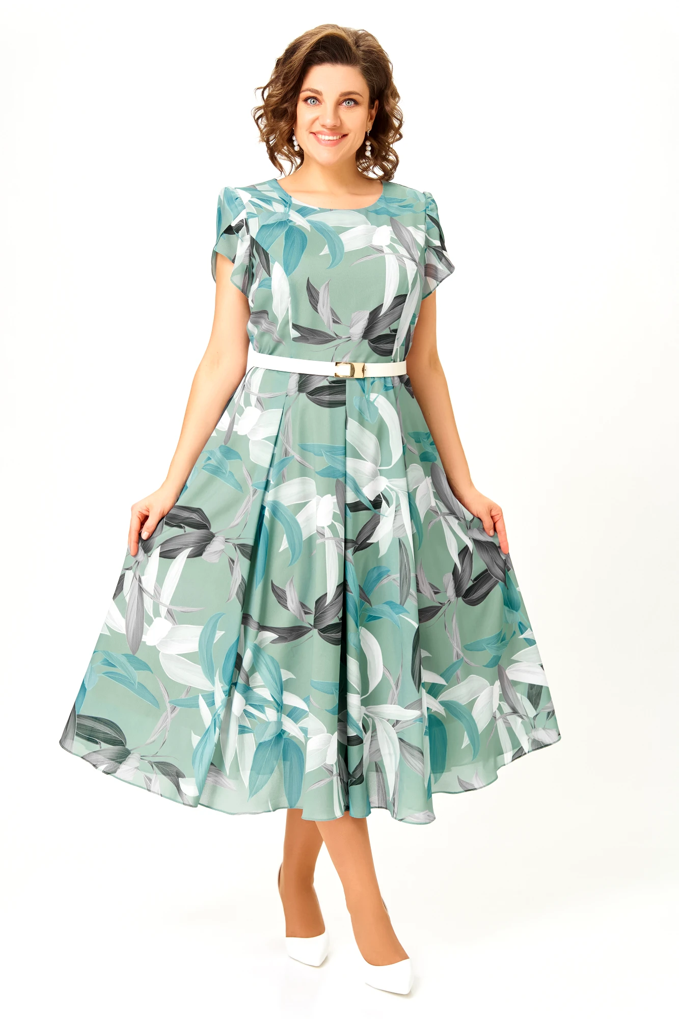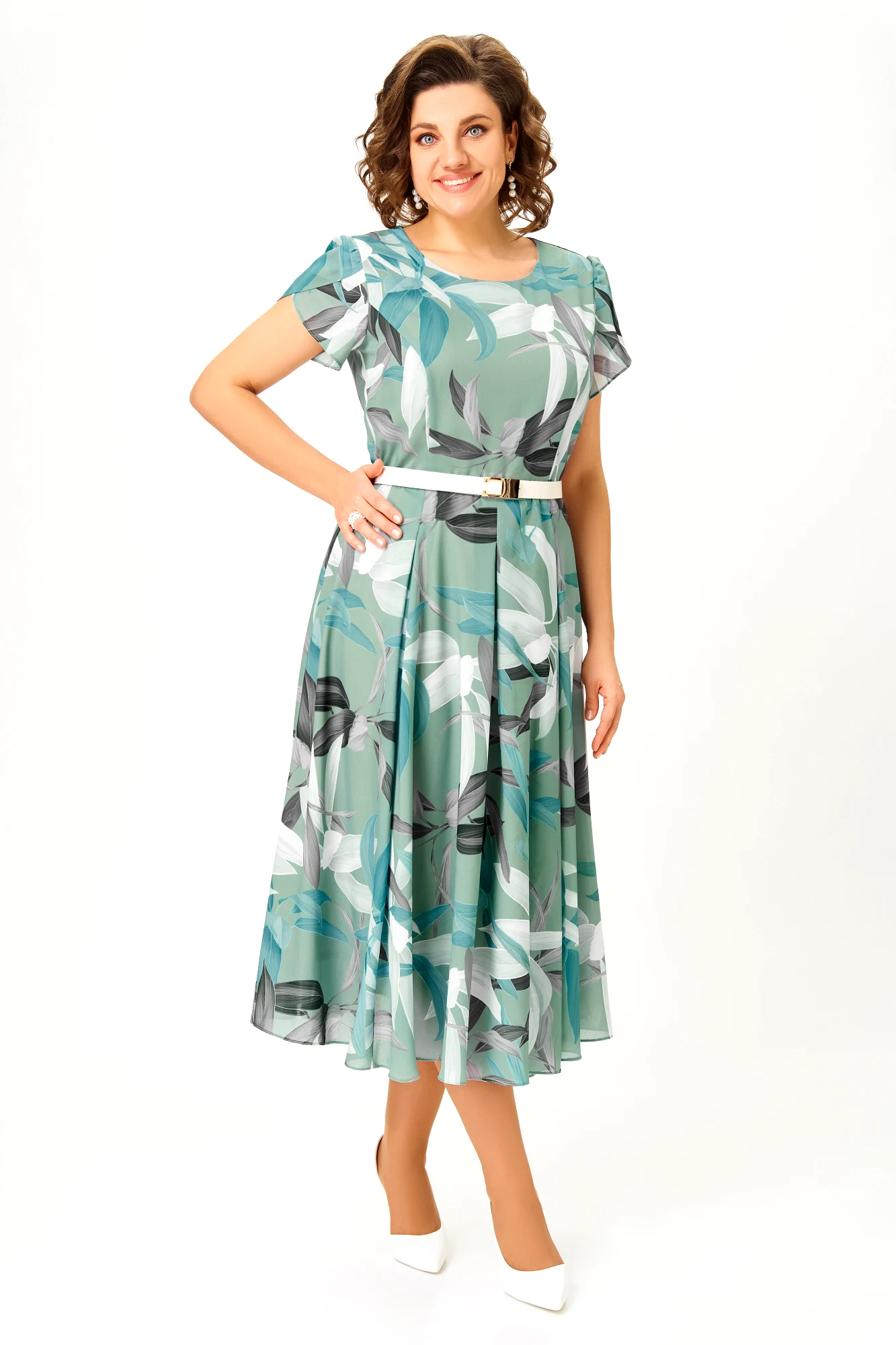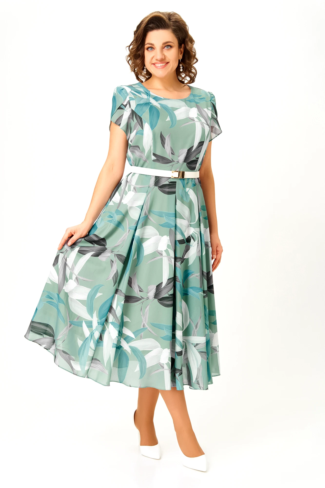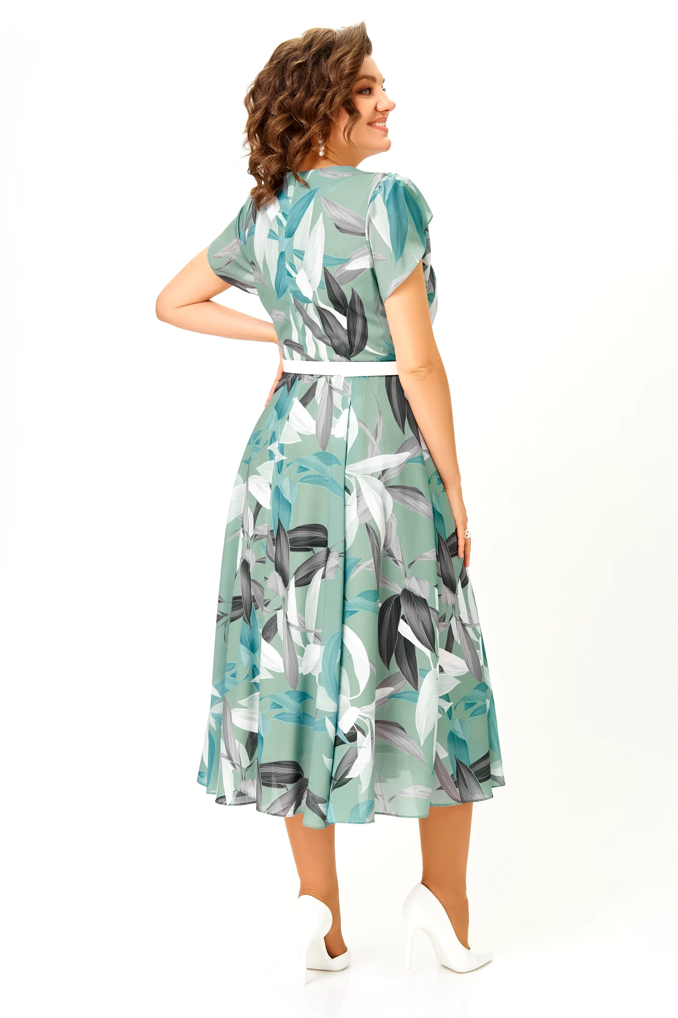 Платье Swallow 843 .6 мятный, принт листья