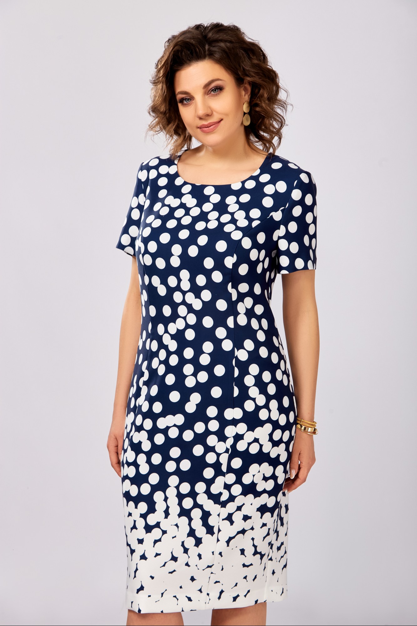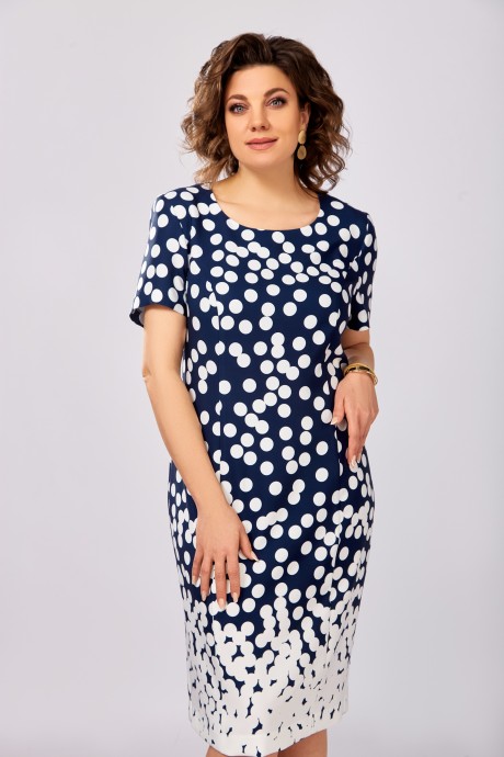 Платье Swallow 847 .2 Синий индиго, Принт белый горох