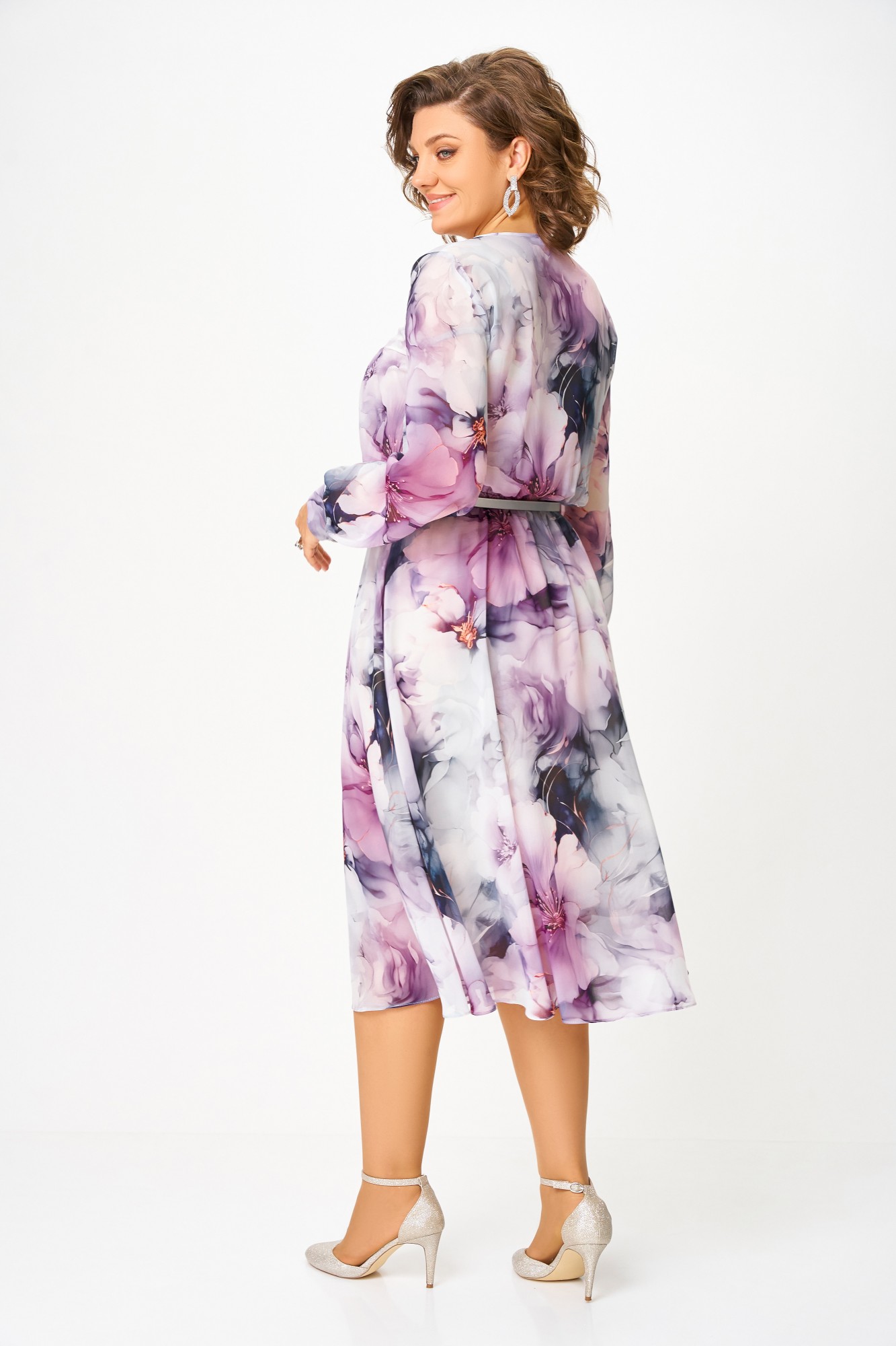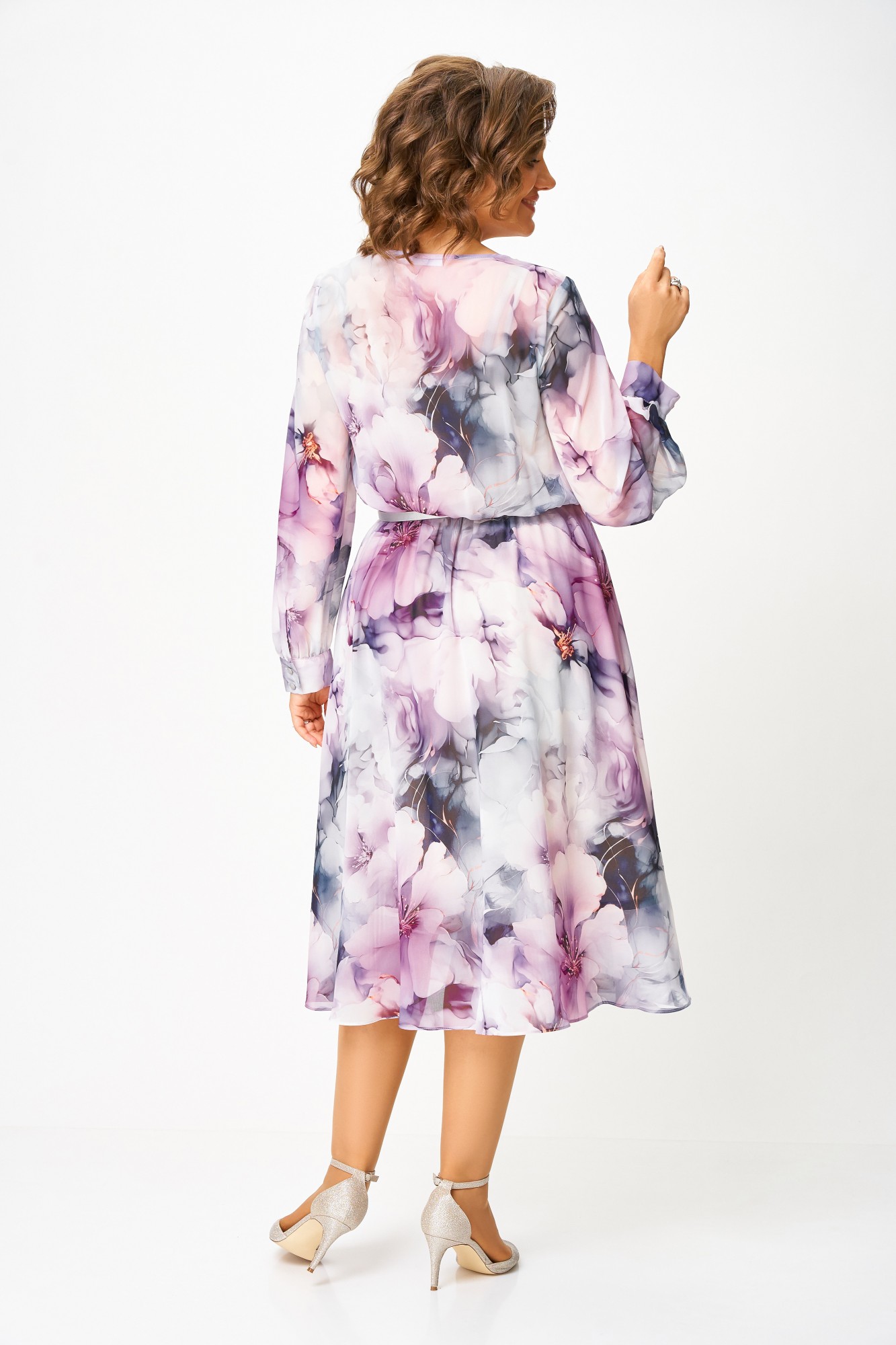 Платье Swallow 876 .1 Дымчато-лиловый, Принт цветы