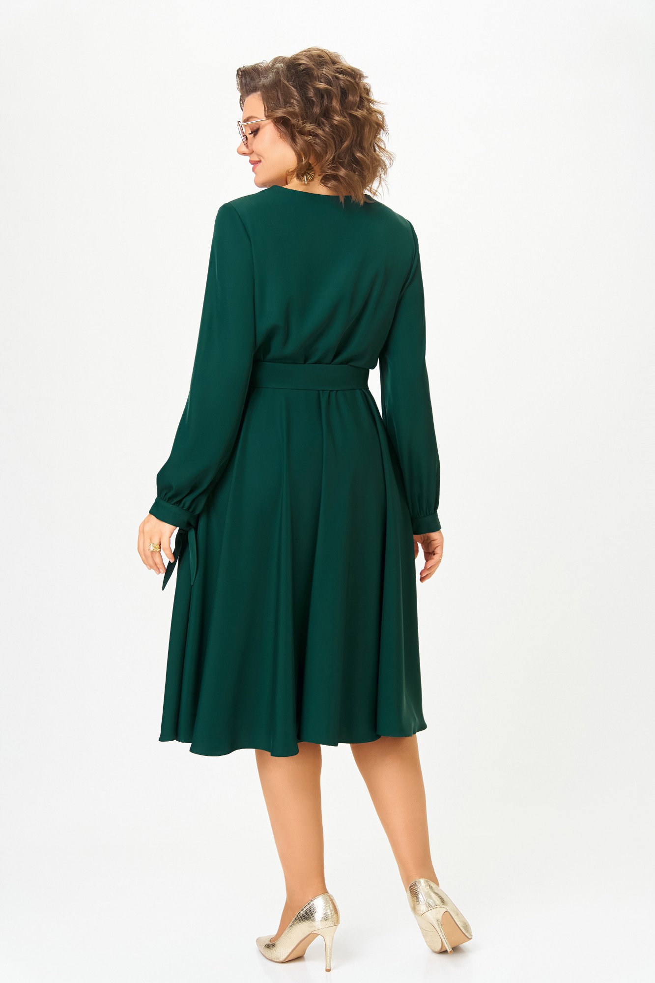 Платье из поливискозного полотна Х-образного силуэта, отрезное по линии талии.