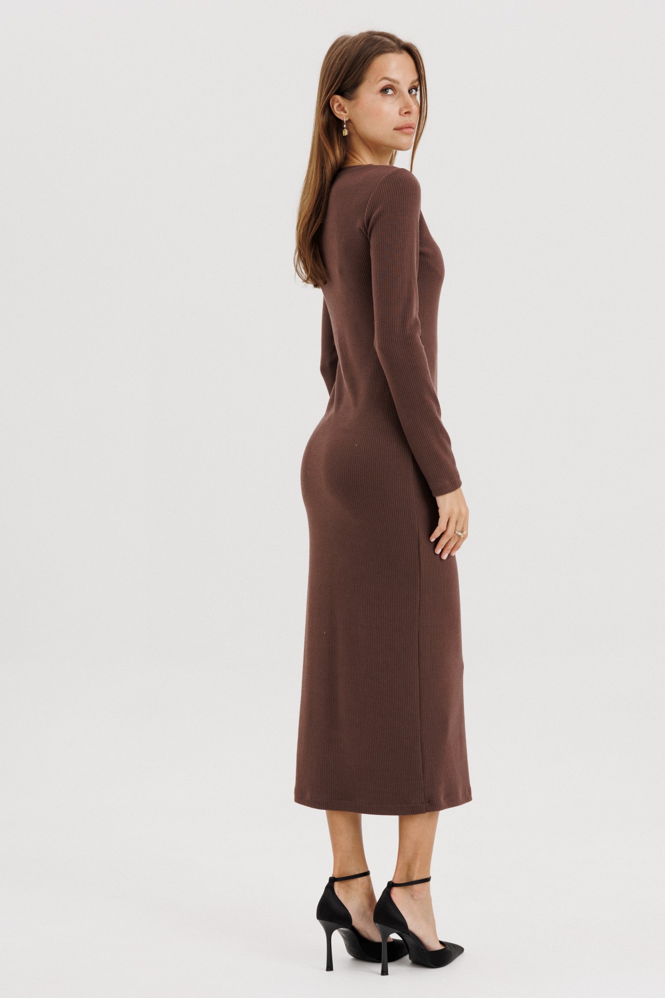 Платье в длине макси, выполнено из мягкого трикотажа. Платье прилегающего силуэта, лаконичное - база в гардеробе. Трикотаж плотный, держит форму, не просвечивает. Рукав втачной, горловина округлая.