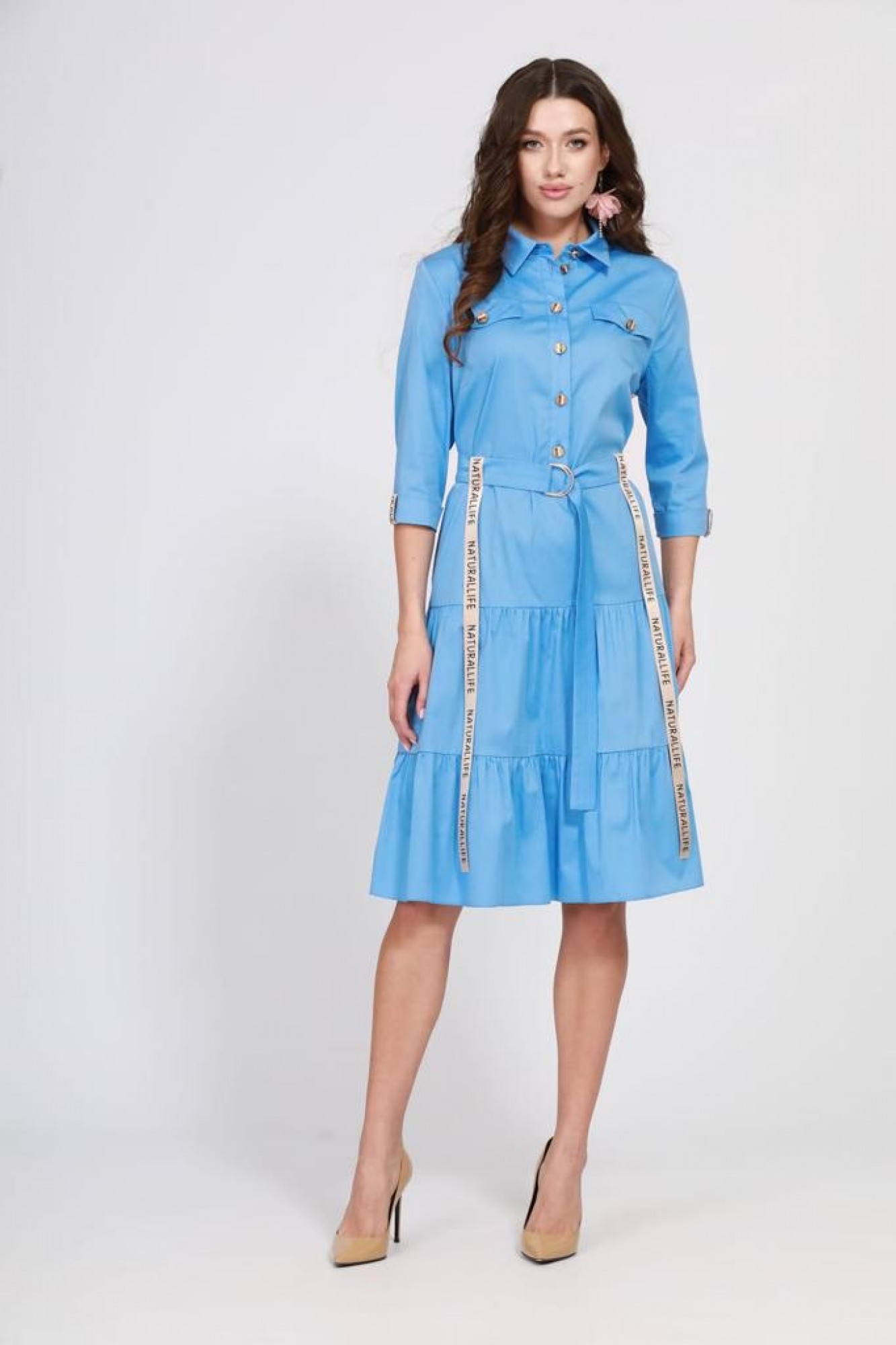 Стильное платье в приятном голубом оттенке станет любимой вещью в Вашем гардеробе. Платье идеально подходит для весенней погоды, ткань приятная к телу. В нем будет комфортно в жару, поскольку в составе